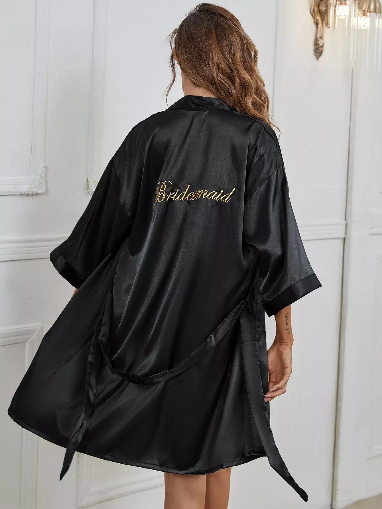 رداء وصيفة العروس من الساتان المطرز بأحرف بدون حزام