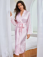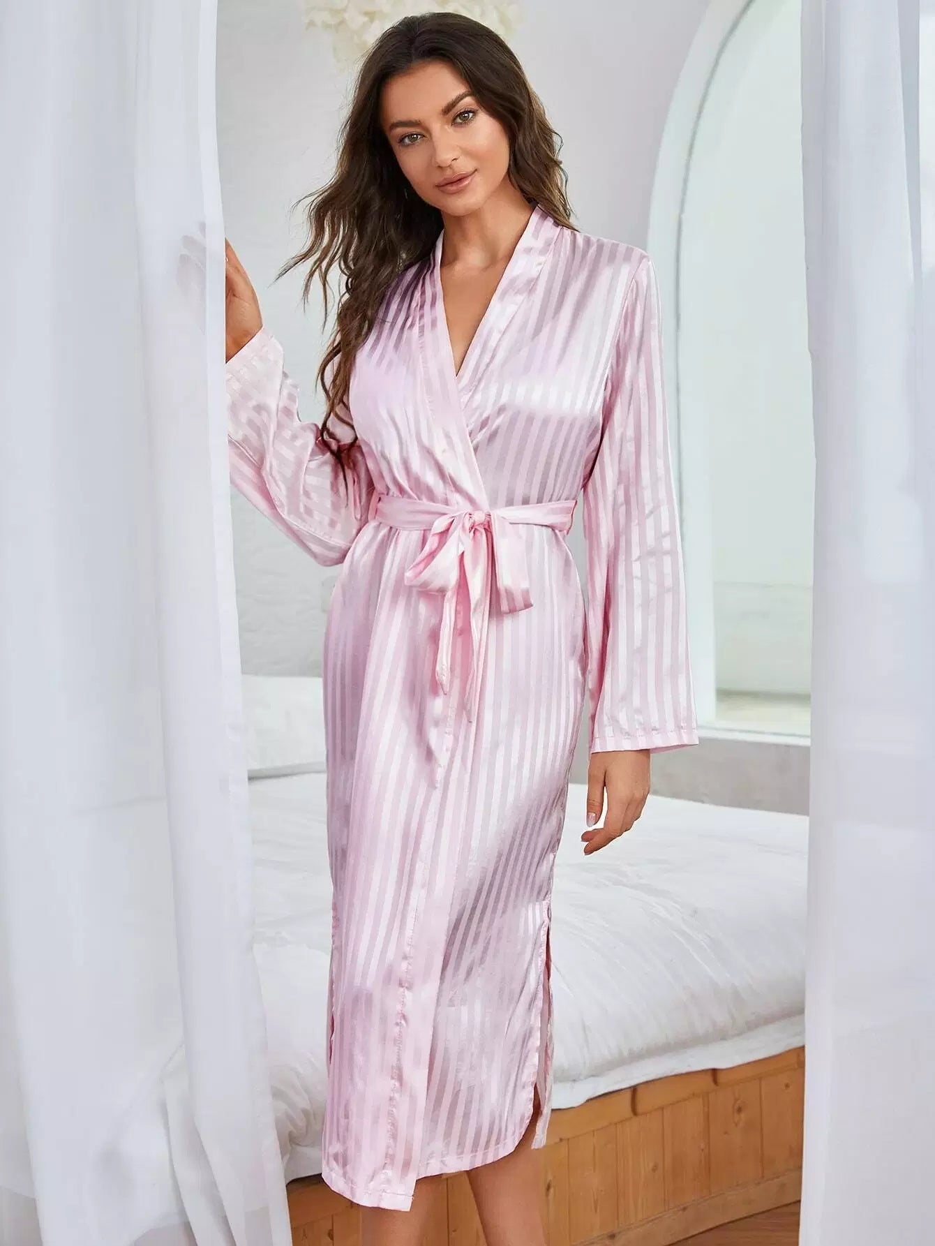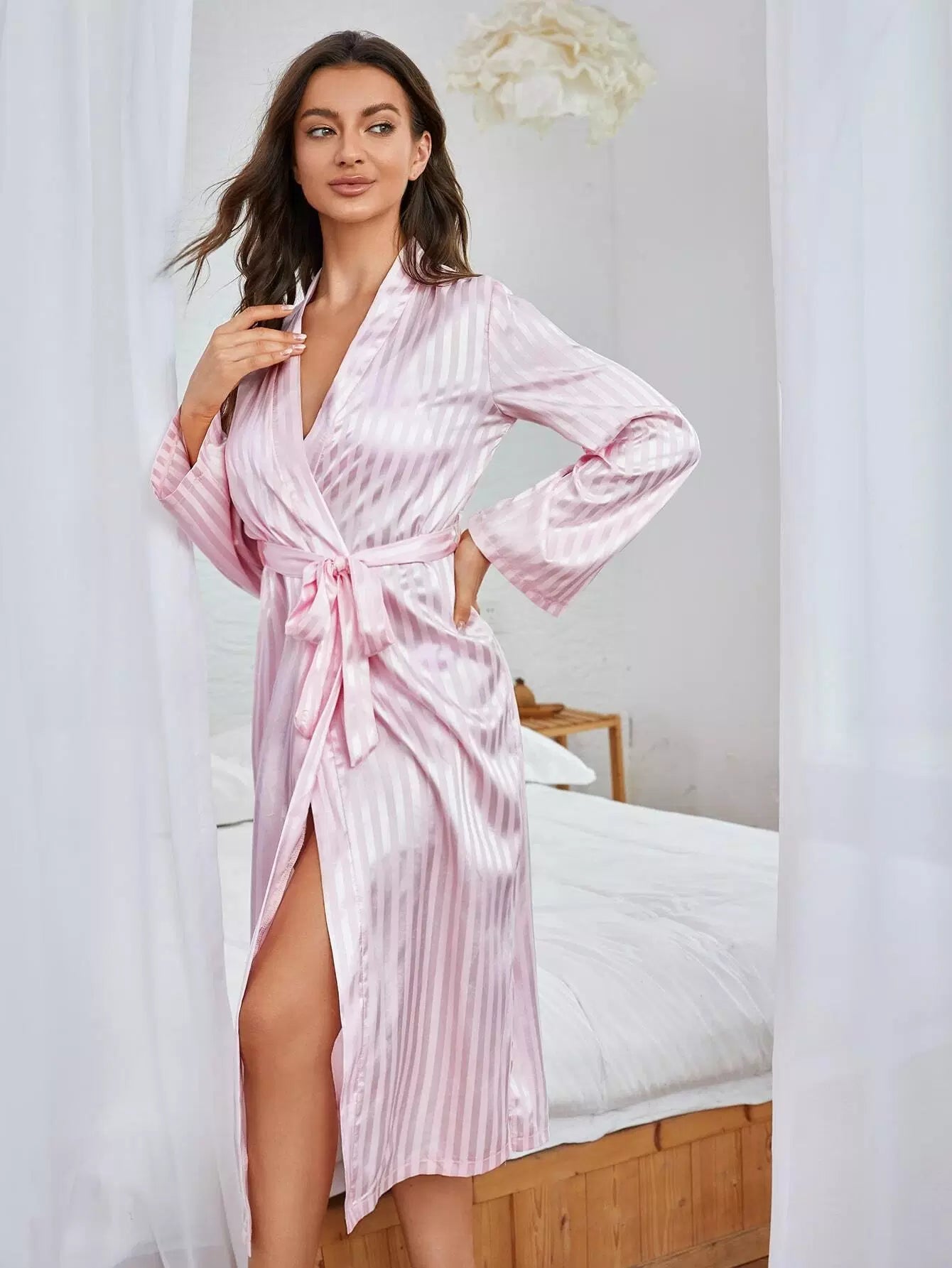 رداء نوم ساتان بحاشية مقسمة بدون حزام