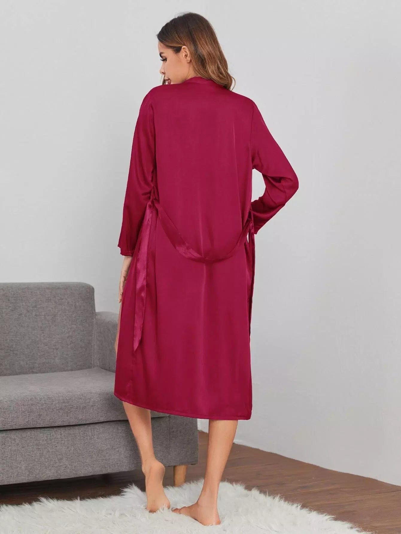 رداء ليلي من الساتان بربطة عنق ذاتي