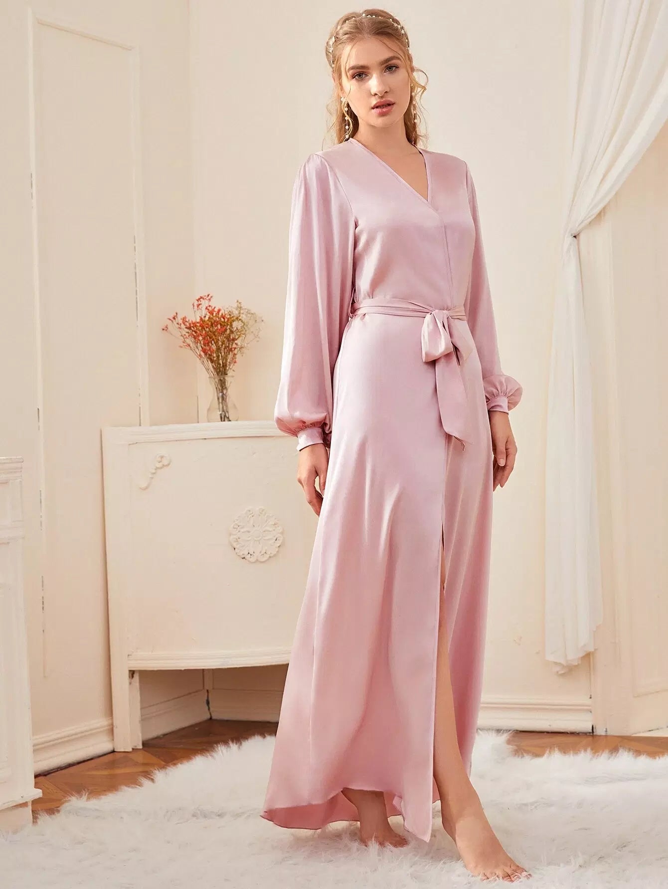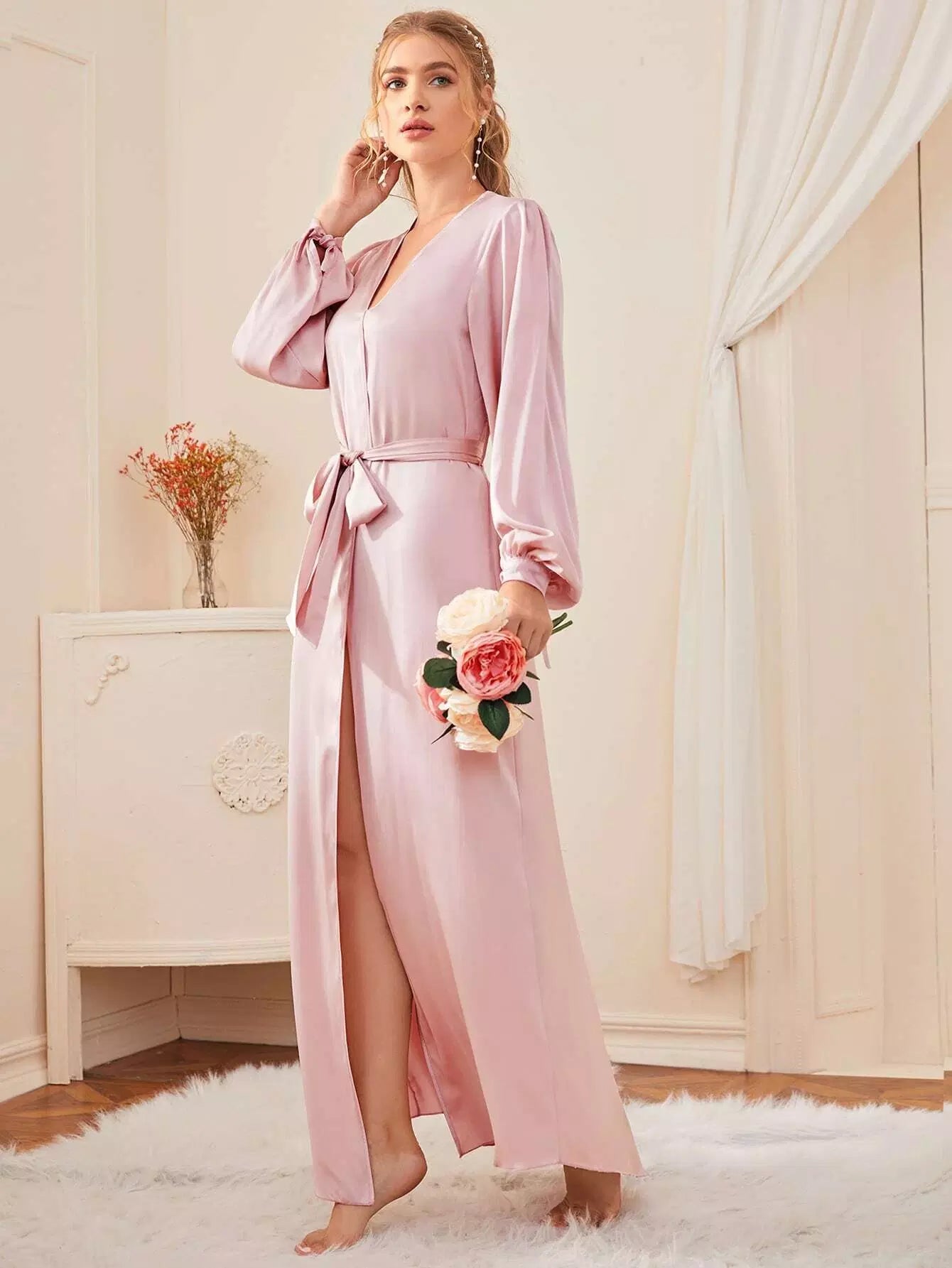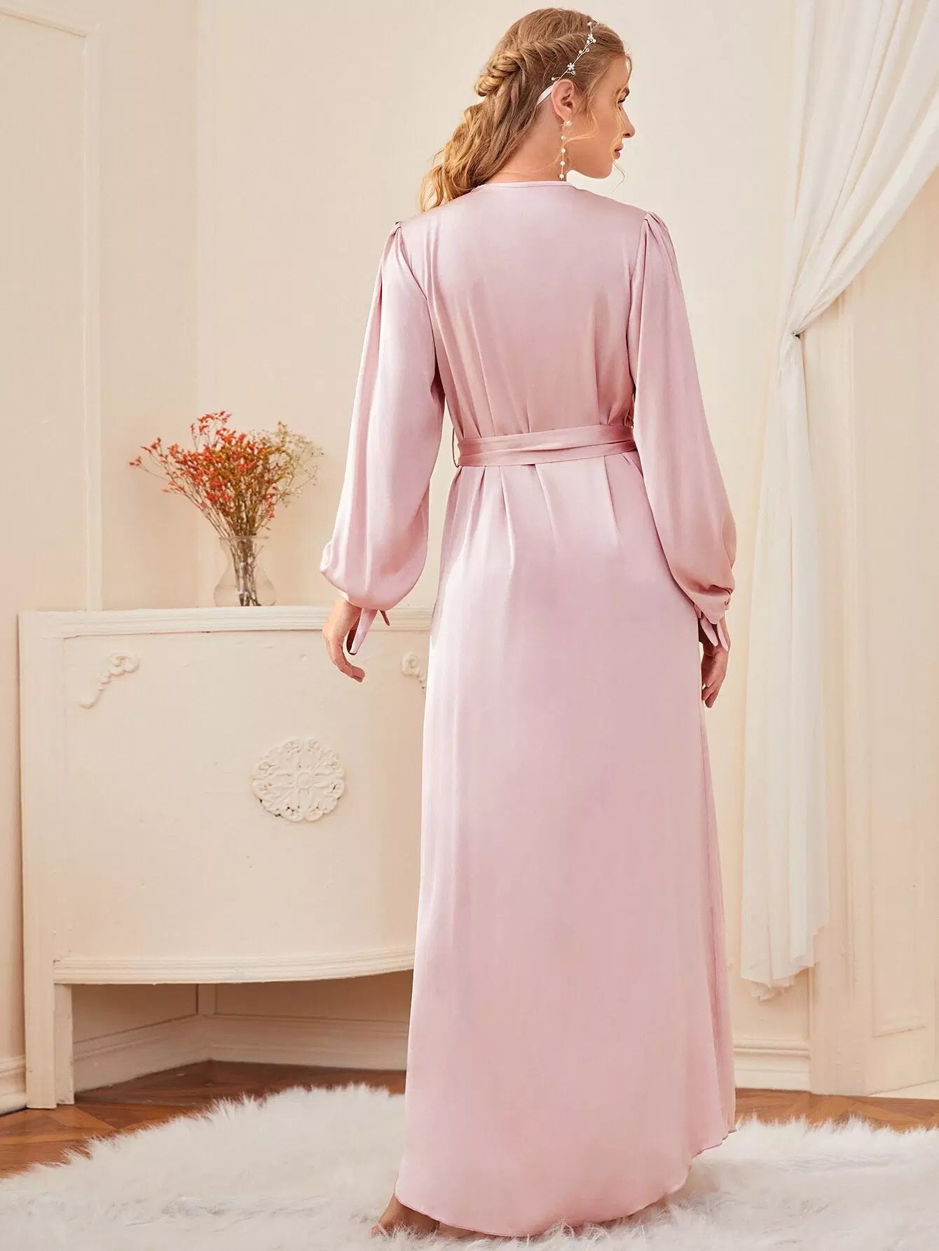 رداء ليلي بأكمام واسعة ورقبة فانوس بدون حزام
