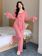 طقم ملابس منزلية من DAZY، مكون من بلوزة وبنطلون بأكمام طويلة وحزام خصر مزين بكشكشة، مناسب للخريف