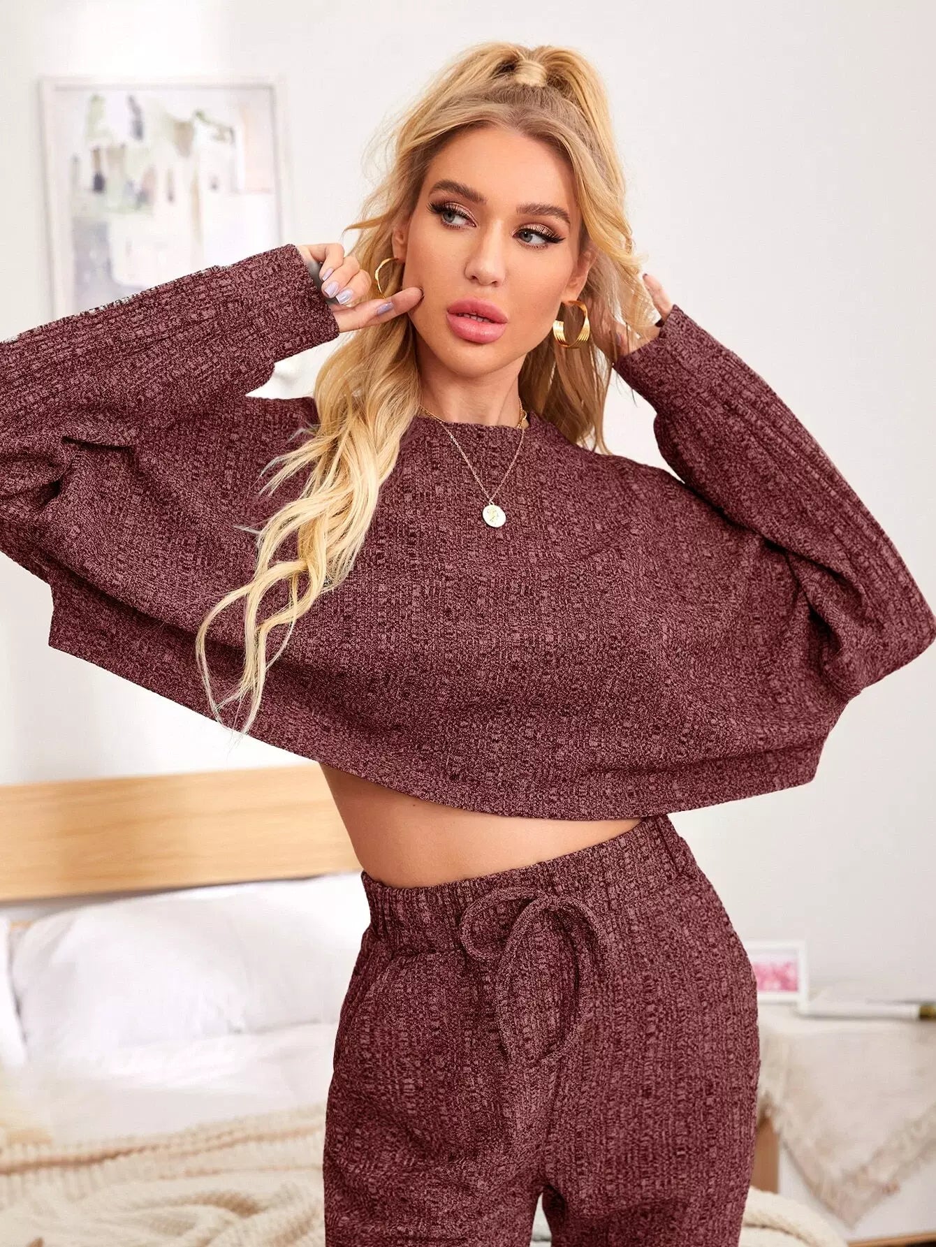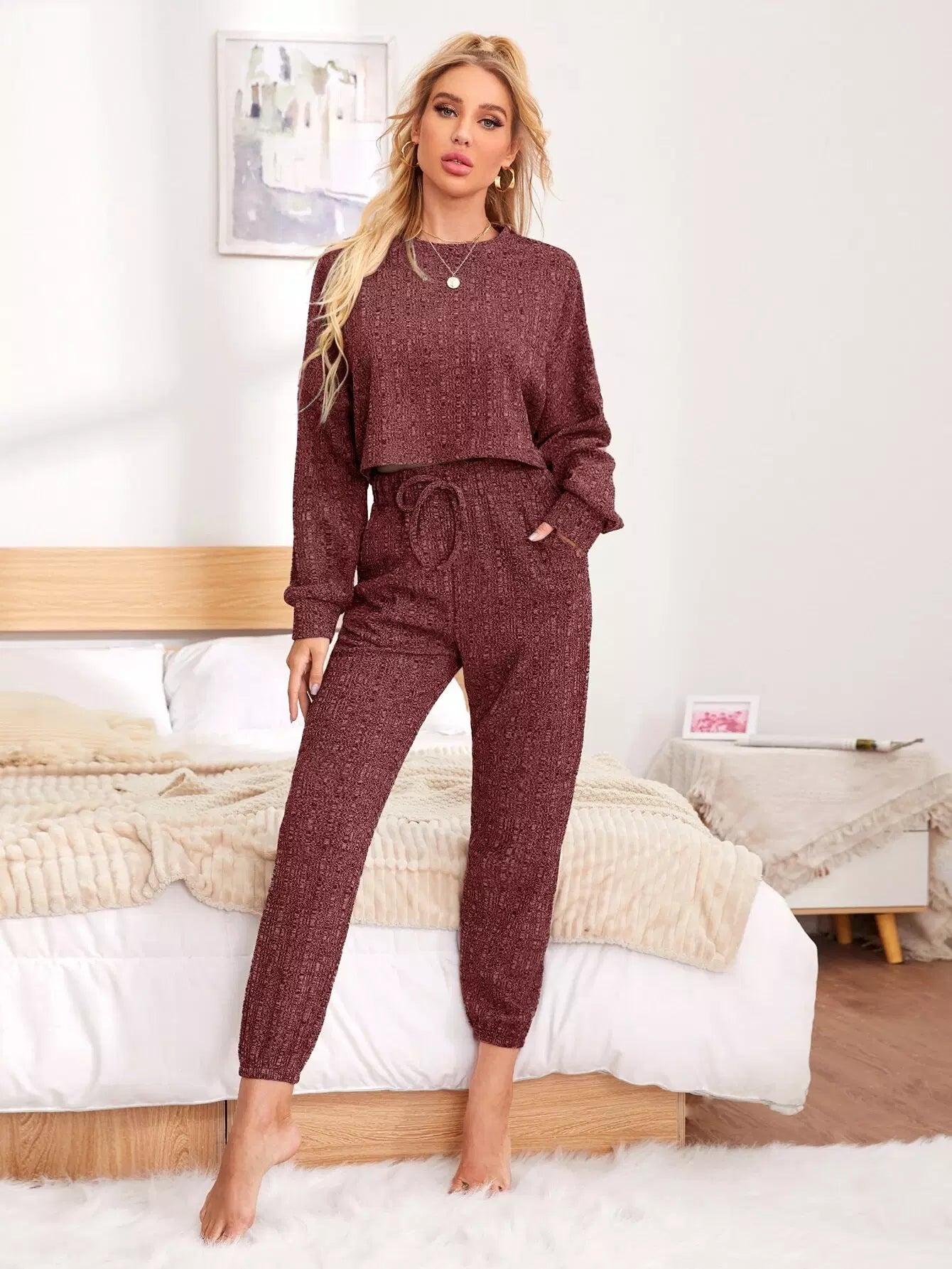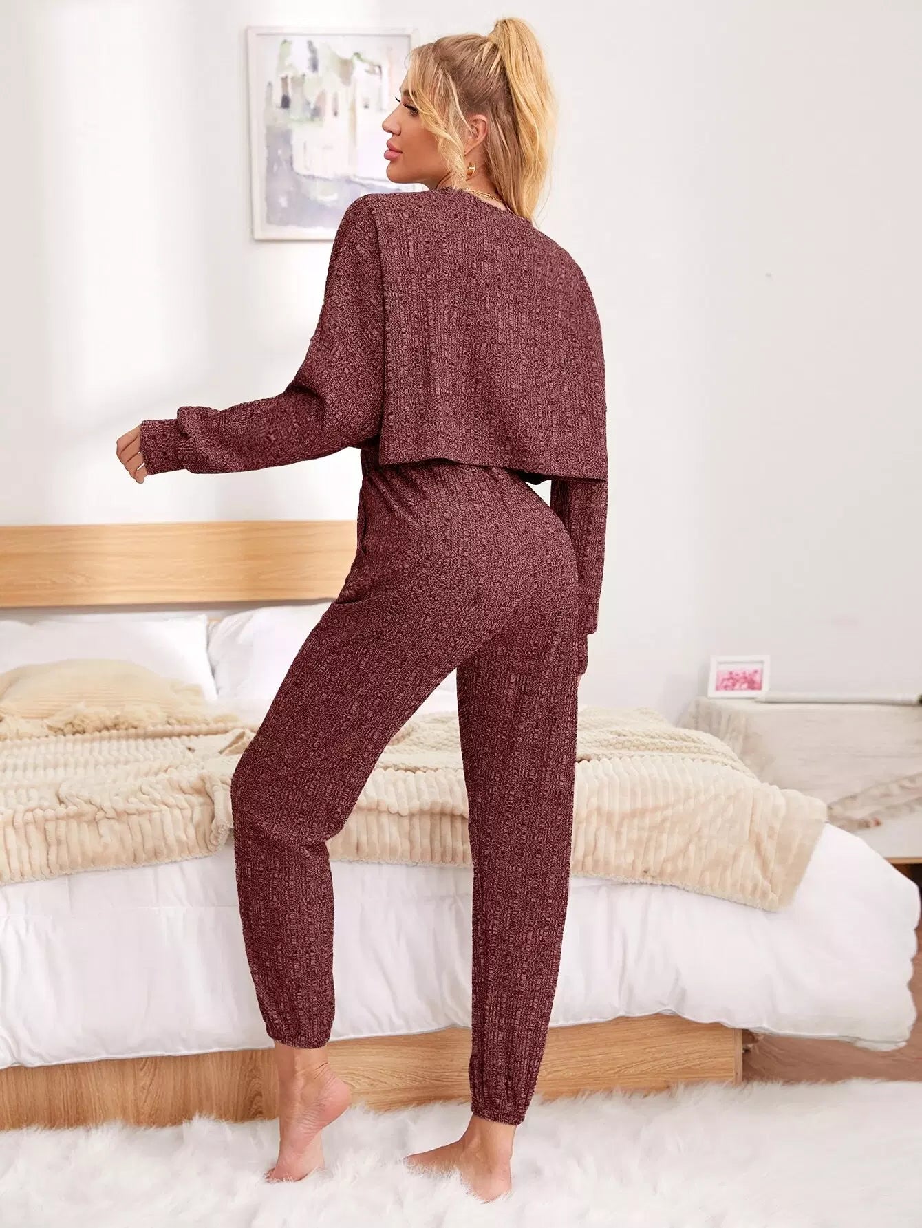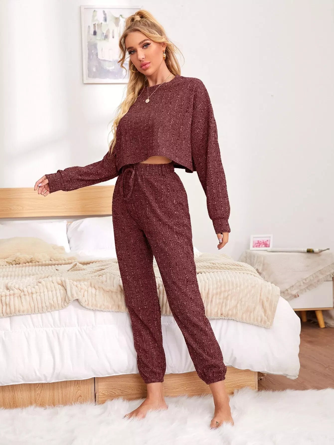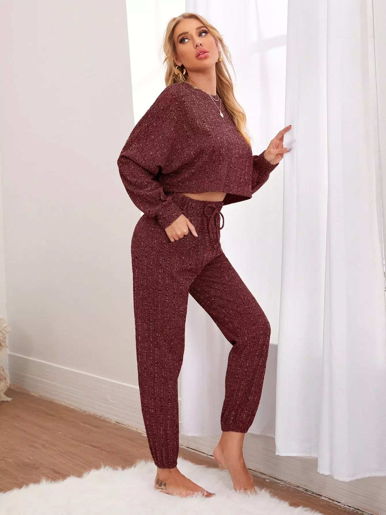 طقم بيجامة بدون أكتاف منسدلة وبنطلون بعقدة