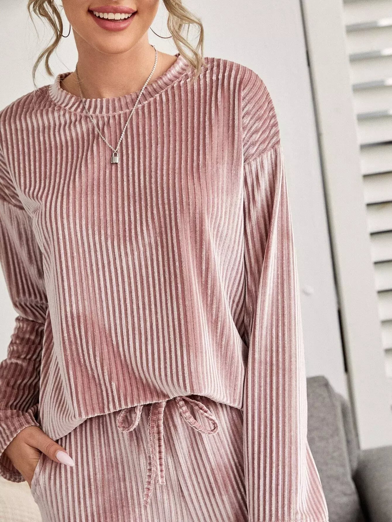 للنساء - مجموعة صالة مخملية ذات كتف منسدل