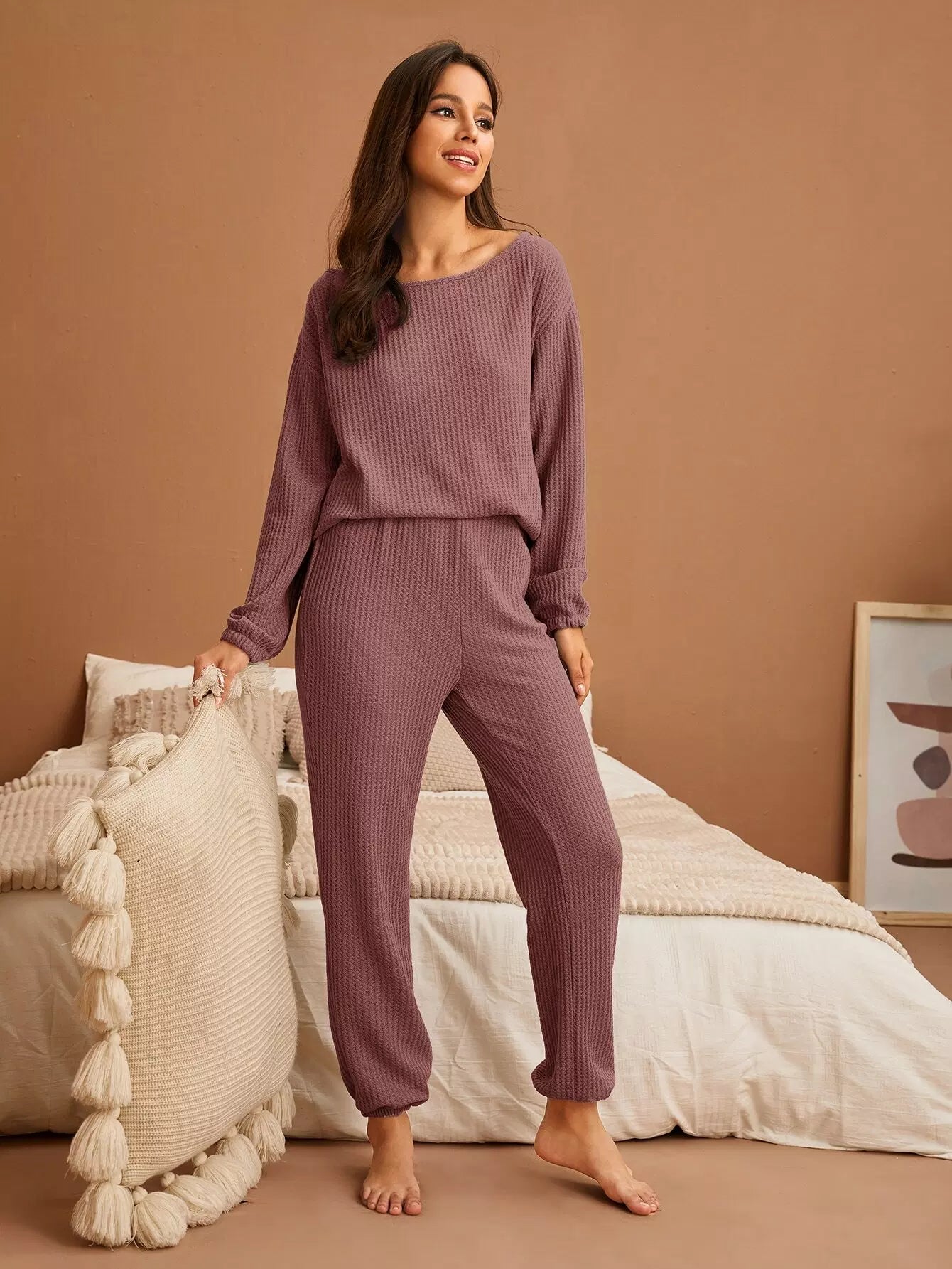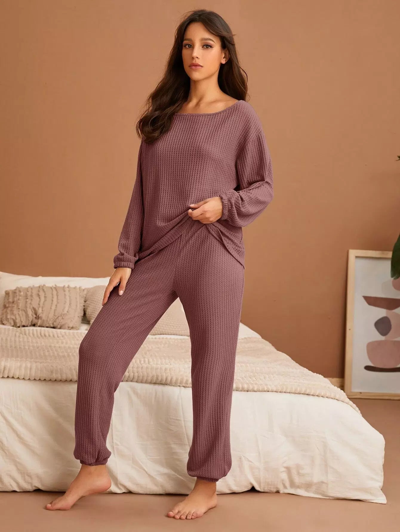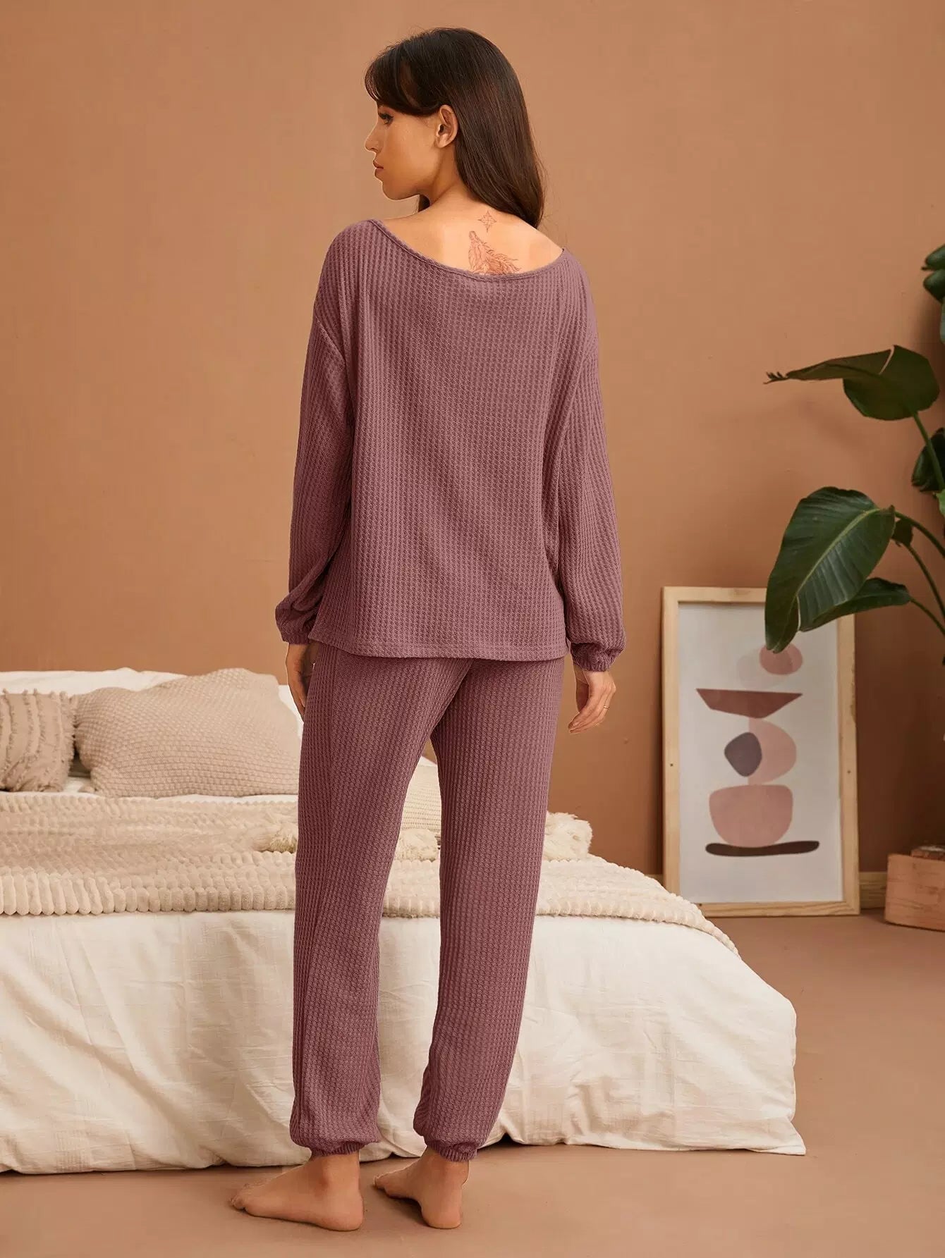 طقم صالة من قماش الوافل المنسدلة على الكتف