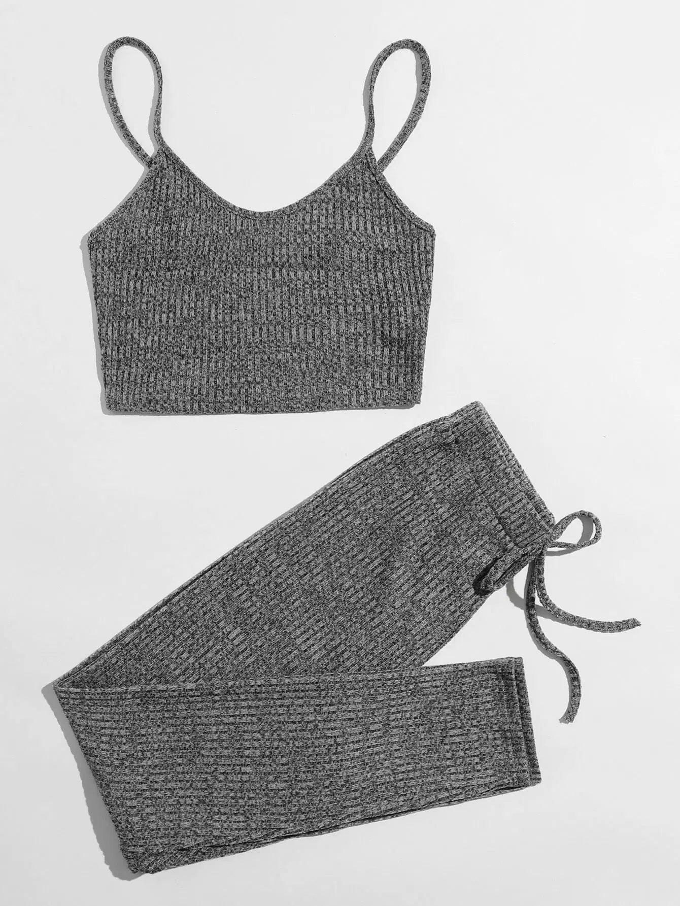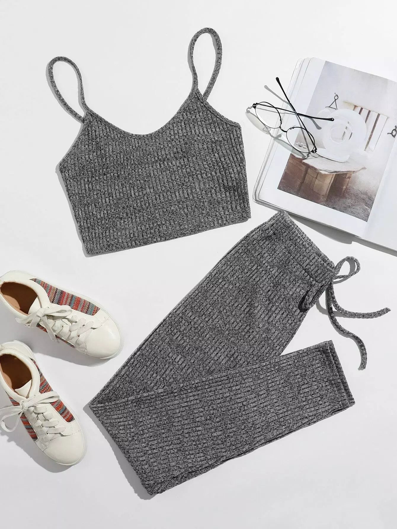 طقم استراحة محبوك برباط محبوك من نسيج مضلع محبوك