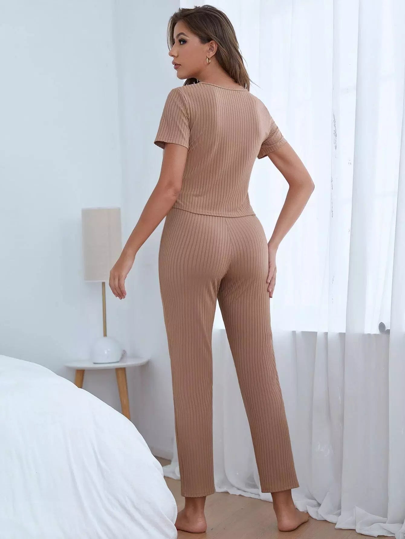 طقم استراحة سادة محبوك على شكل ضلع محبوك