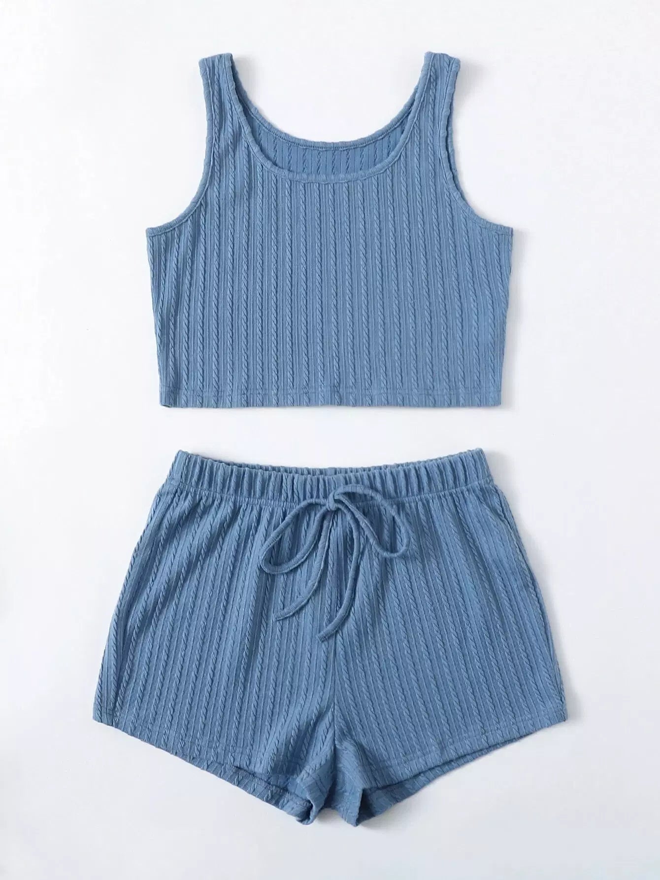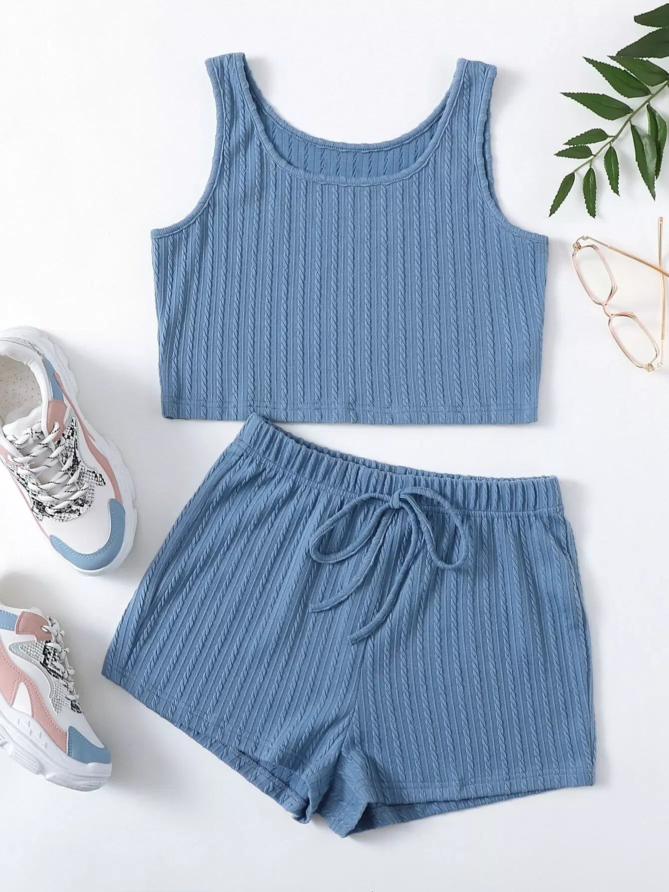 طقم بدون أكمام برقبة دائرية برقبة دائرية وشورت برقبة أمامية بربطة عنق