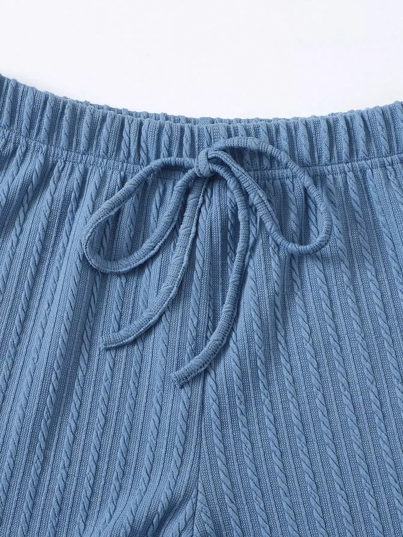 للنساء - طقم قميص بدون أكمام برقبة واسعة وسروال قصير بربطة أمامية