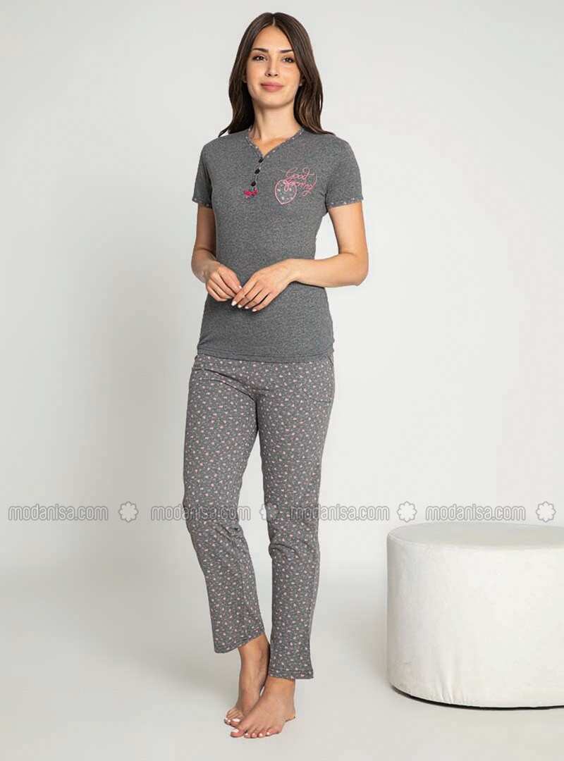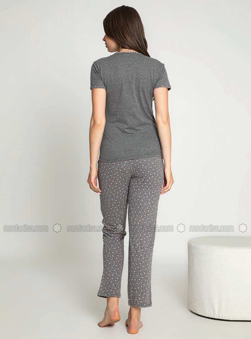 طقم بيجامة متعدد الألوان برقبة دائرية دخانية