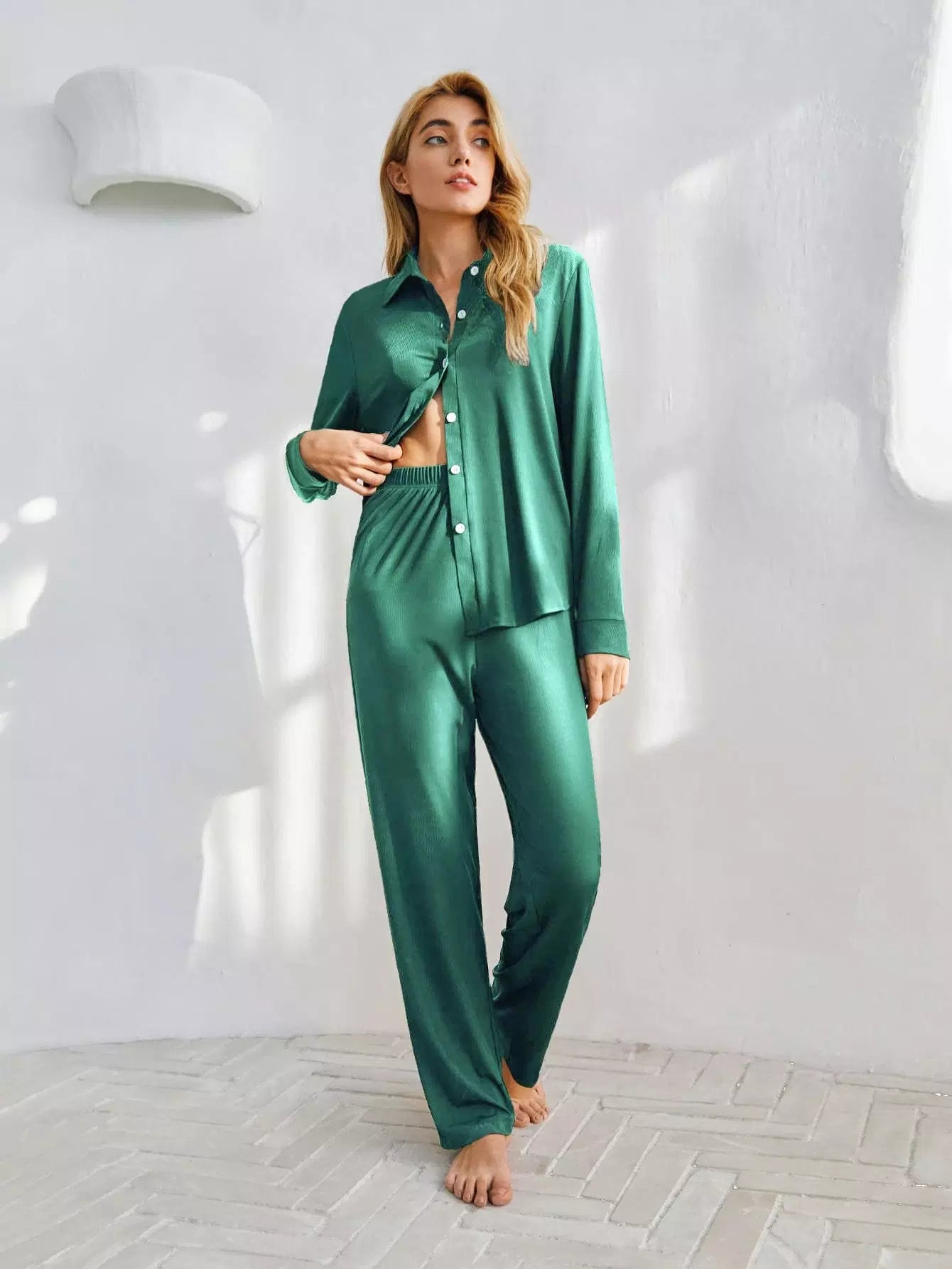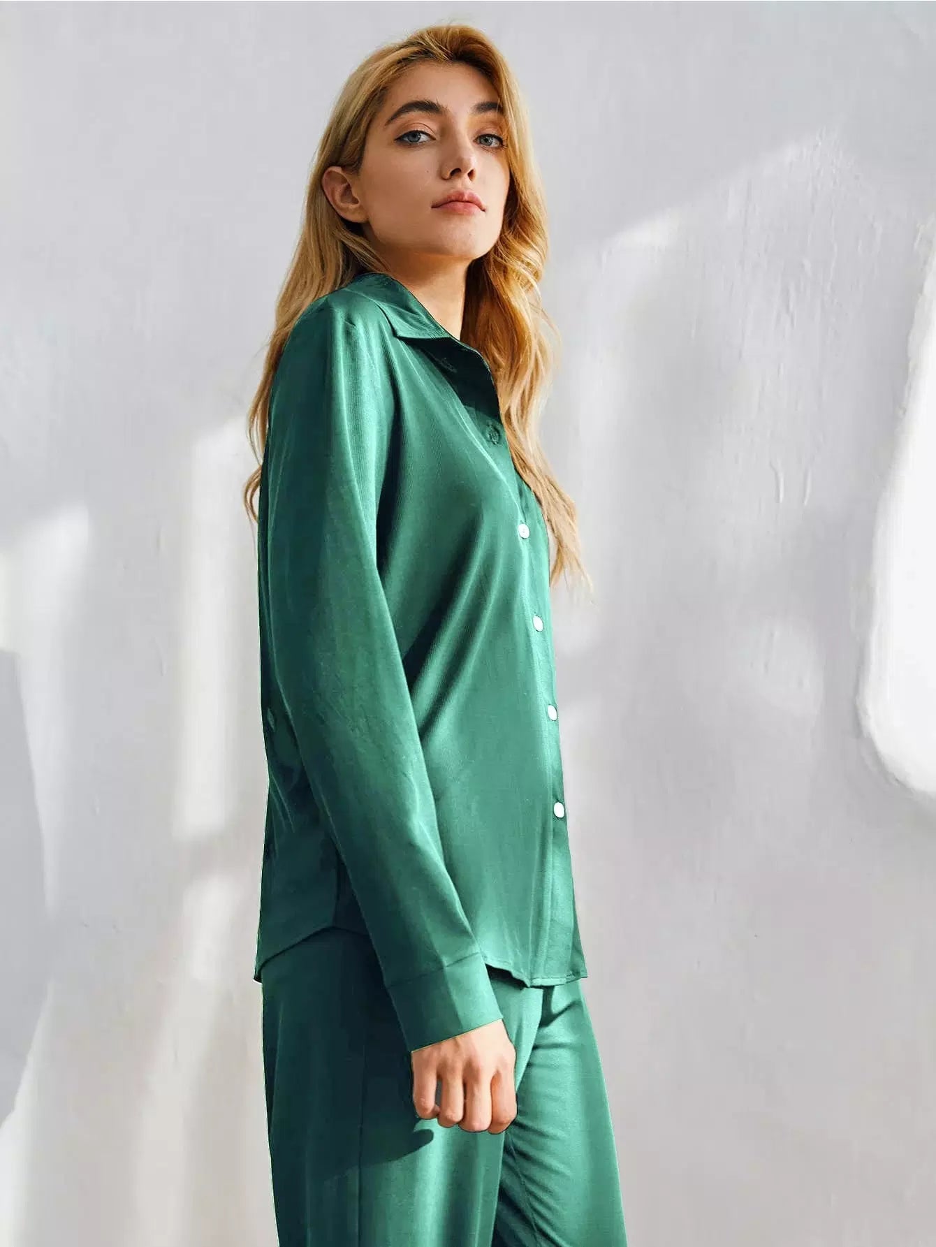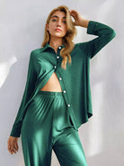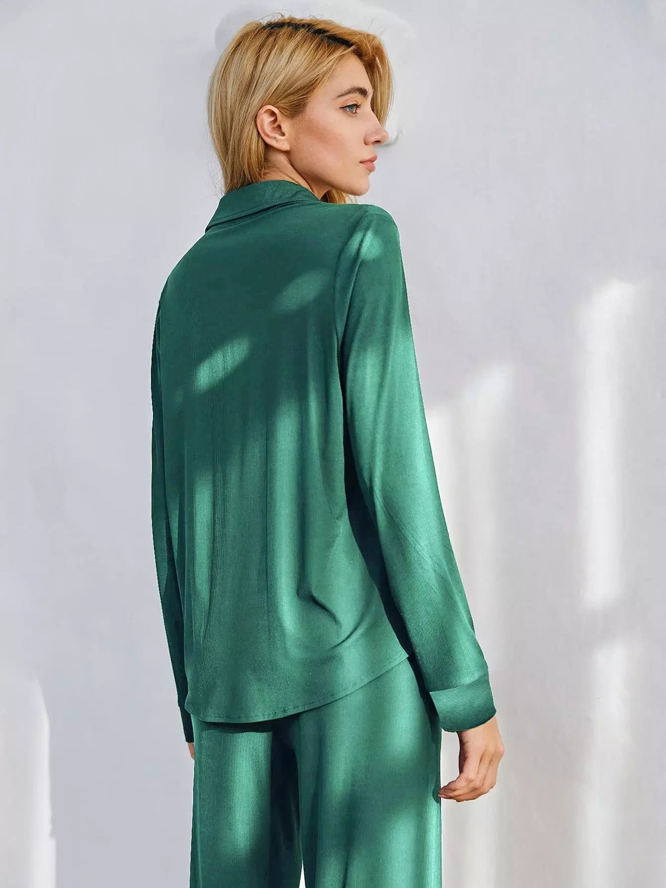 طقم استرخاء بأزرار أمامية سادة