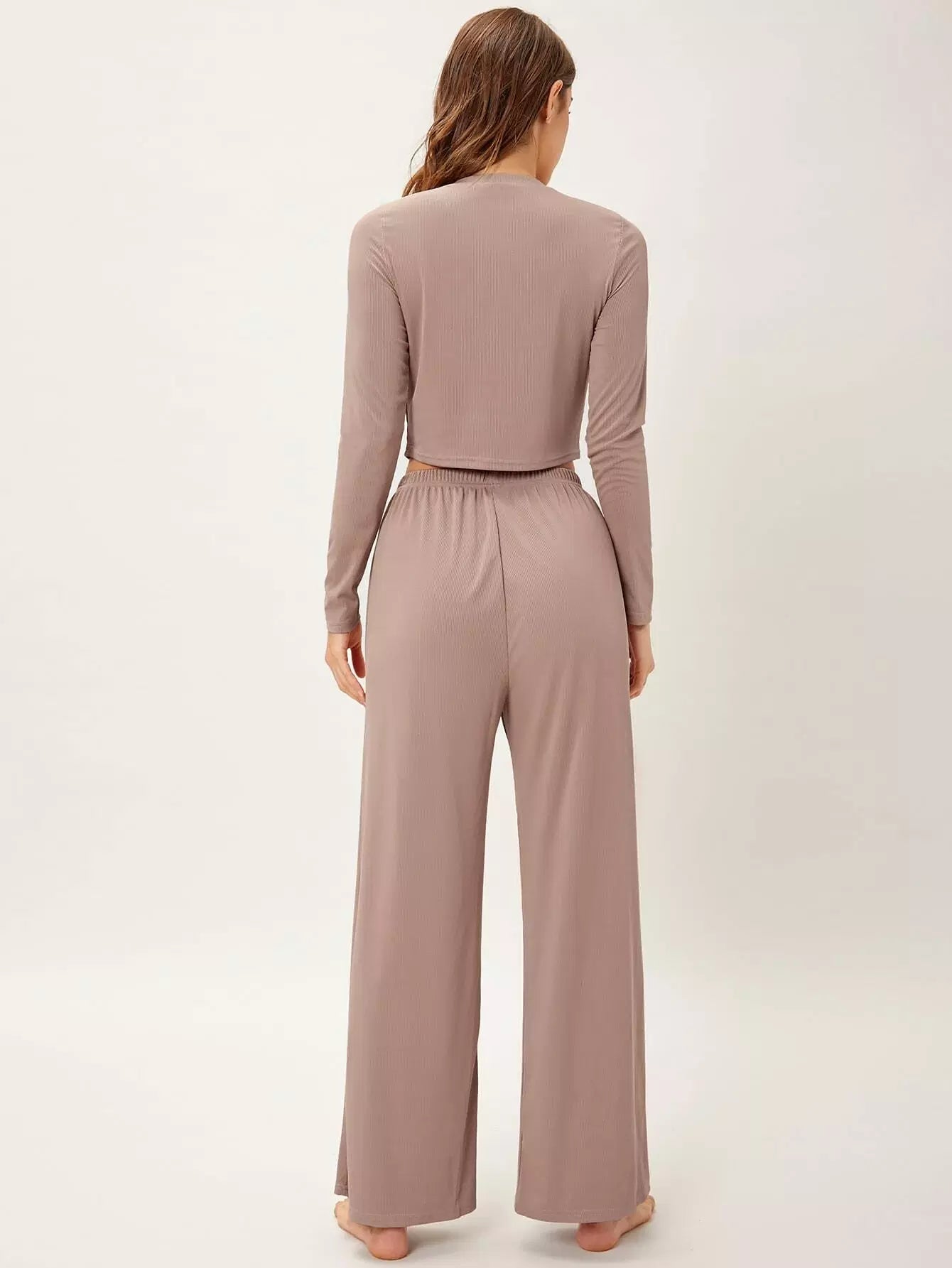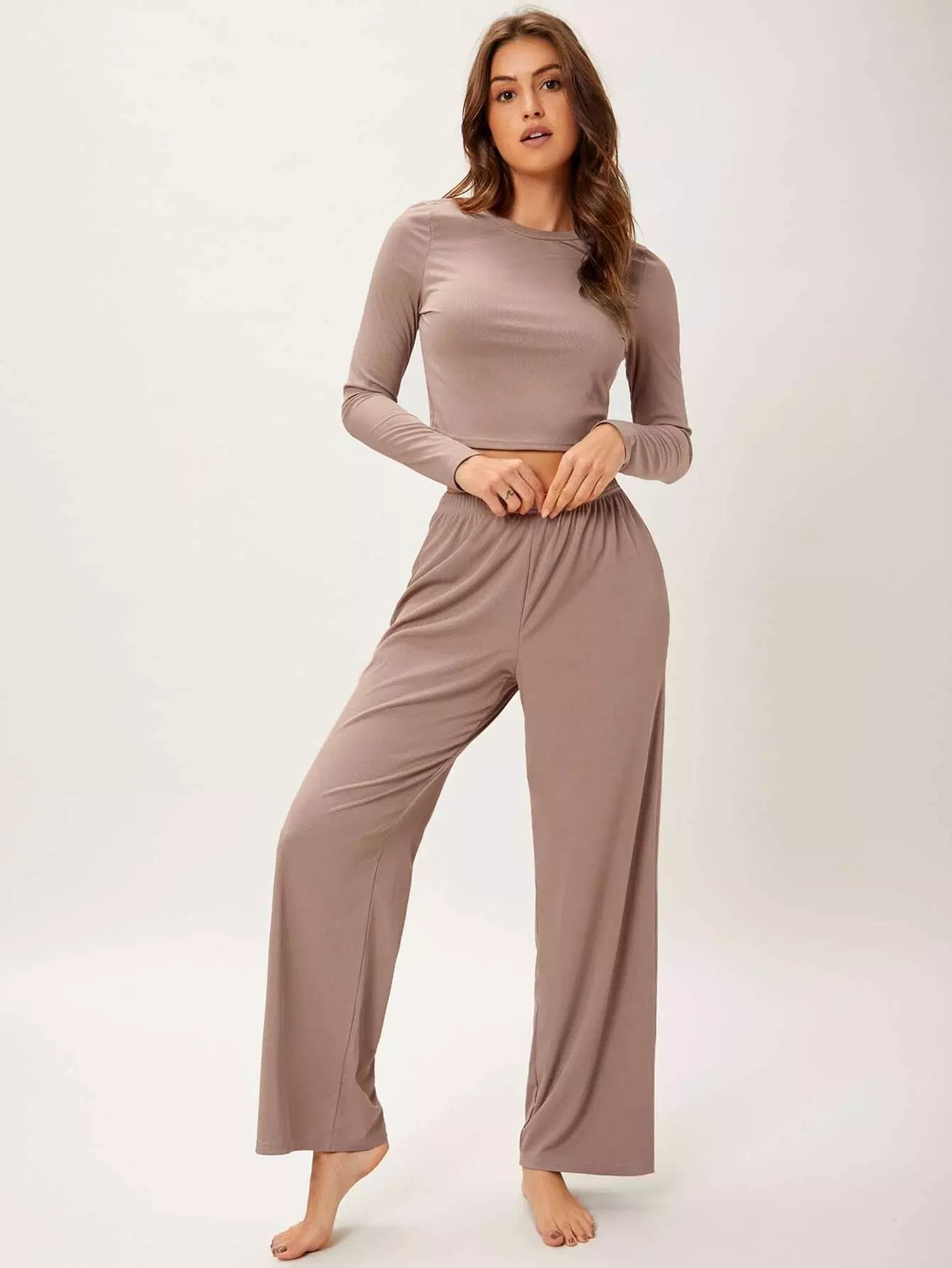 طقم صالة مكون من قميص وبنطلون قصير سادة
