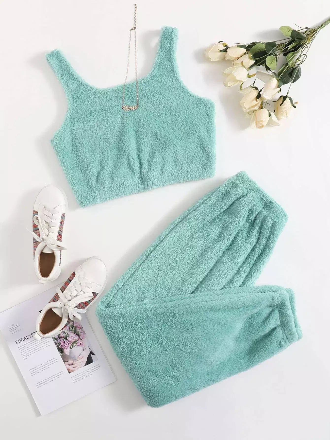 طقم قميص قصير سادة من الفانيلا مع بنطلون طقم استراحة