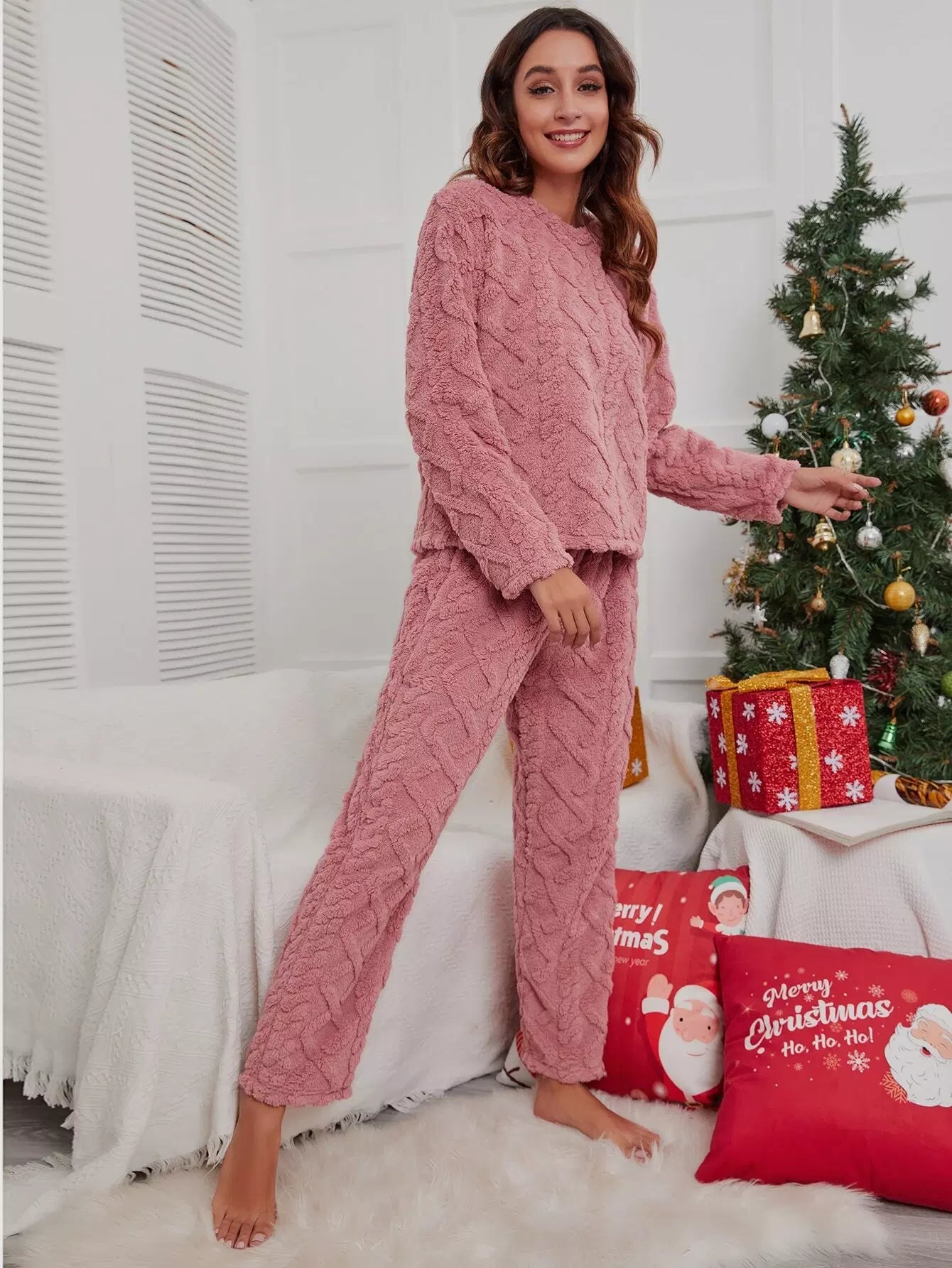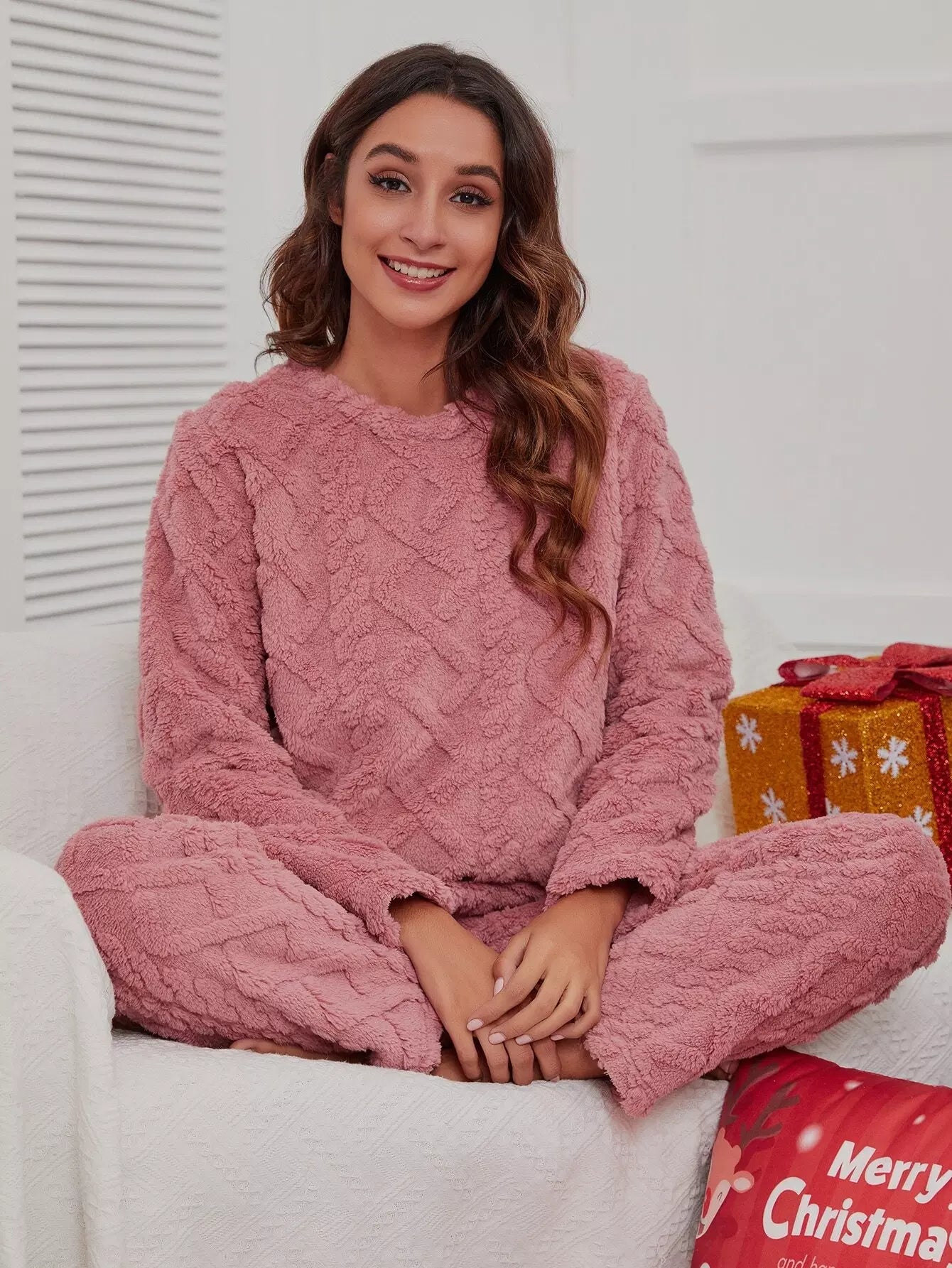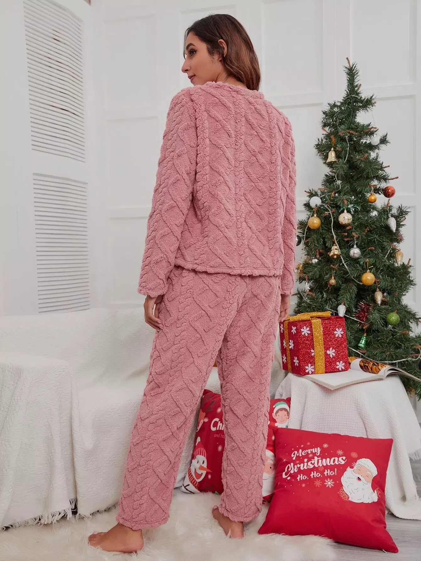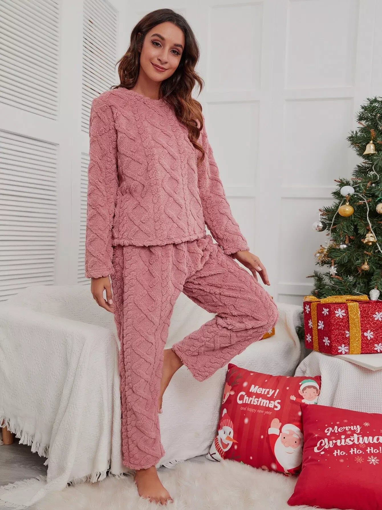 طقم صالة من بلوزة وبنطلون من الفلانيل المتين
