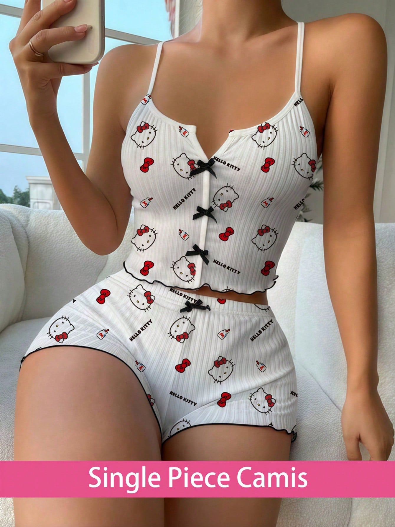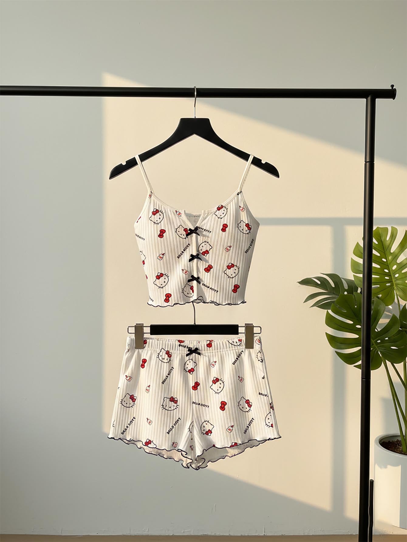 قطعة واحدة من بيجامات هيلو كيتي الصيفية، ملابس نوم نسائية، بلوزة بيجامة هيلو كيتي، منتجات سانريو النسائية