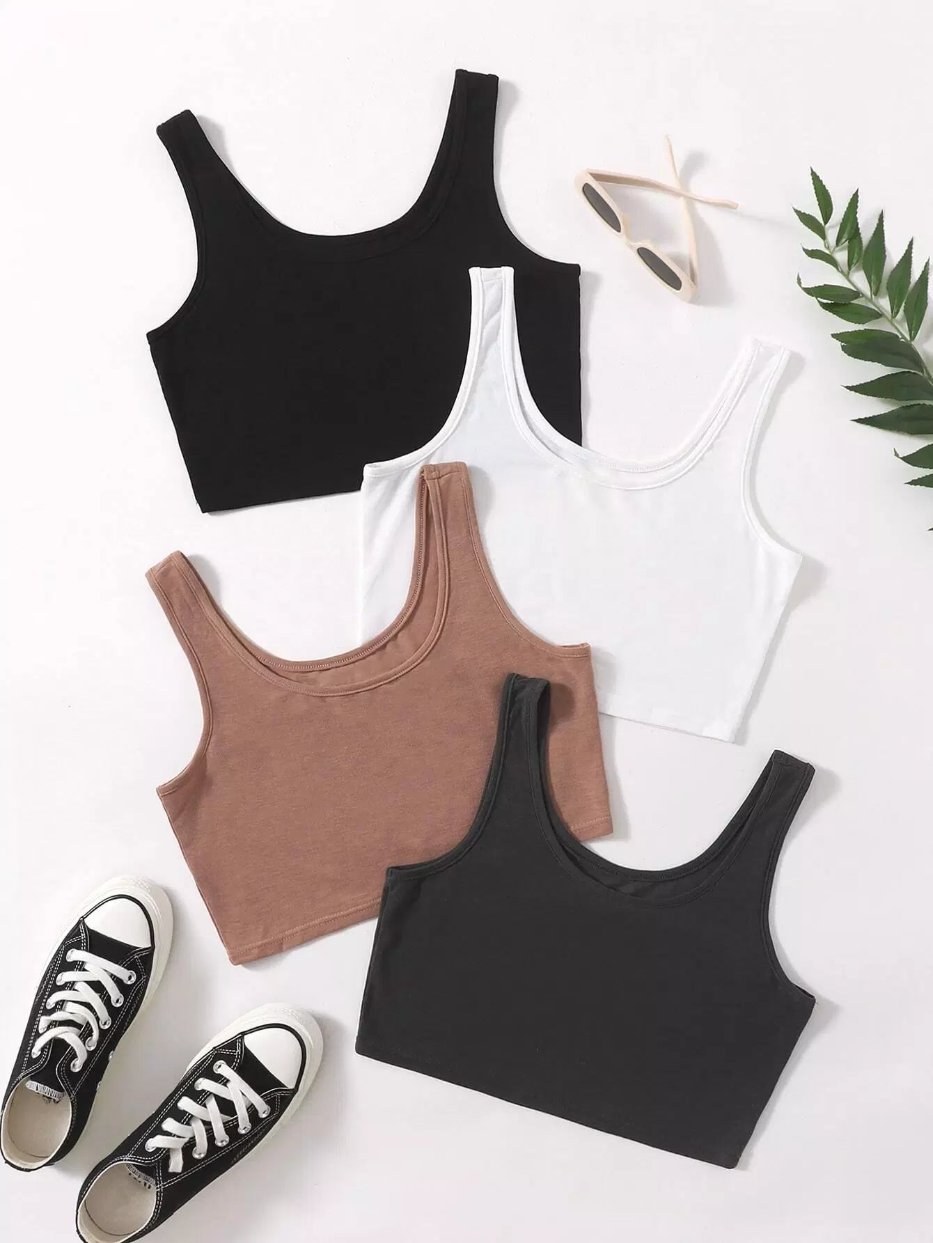 4 قطع من قمصان النوم القصيرة الصلبة