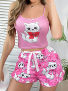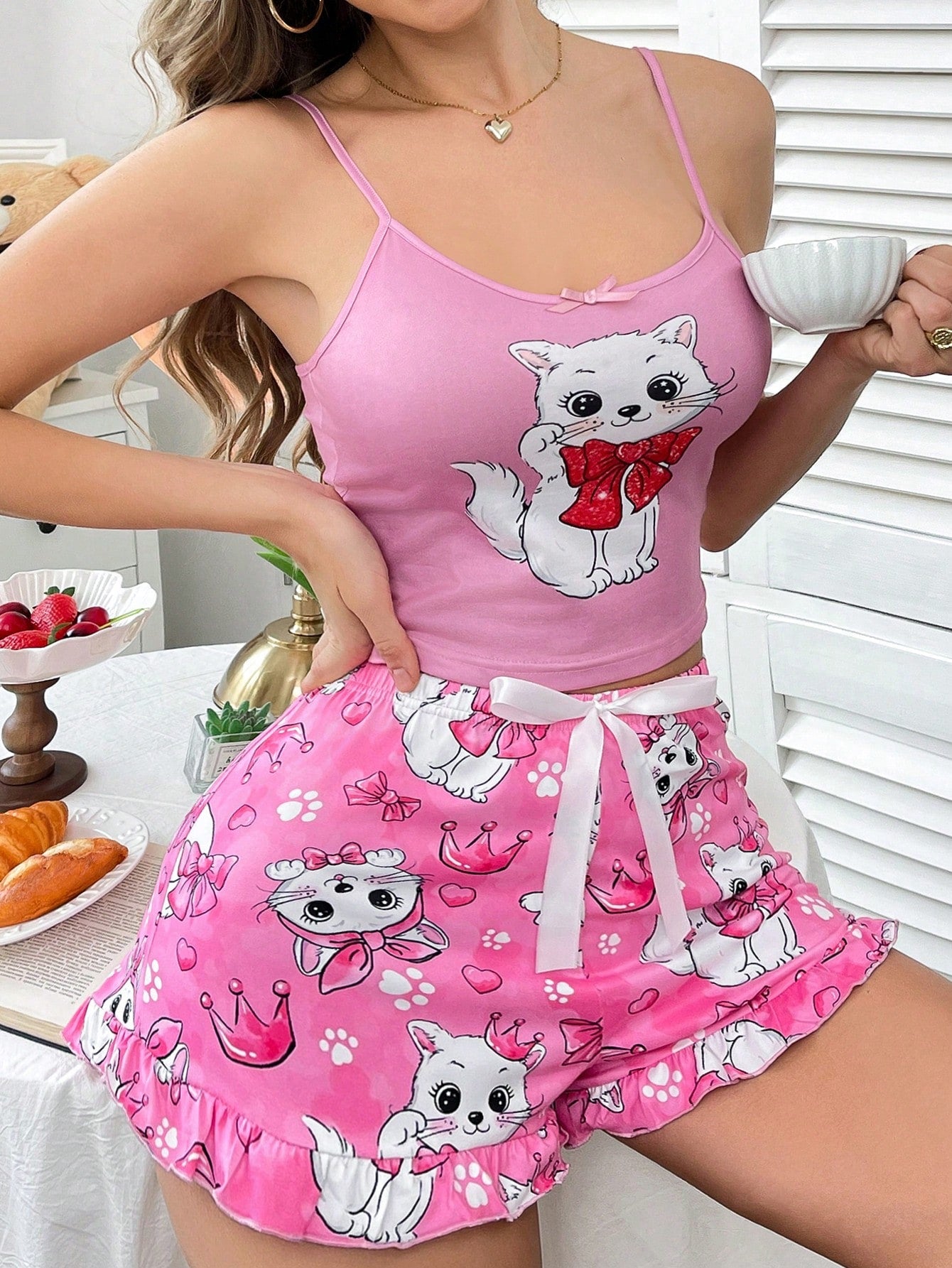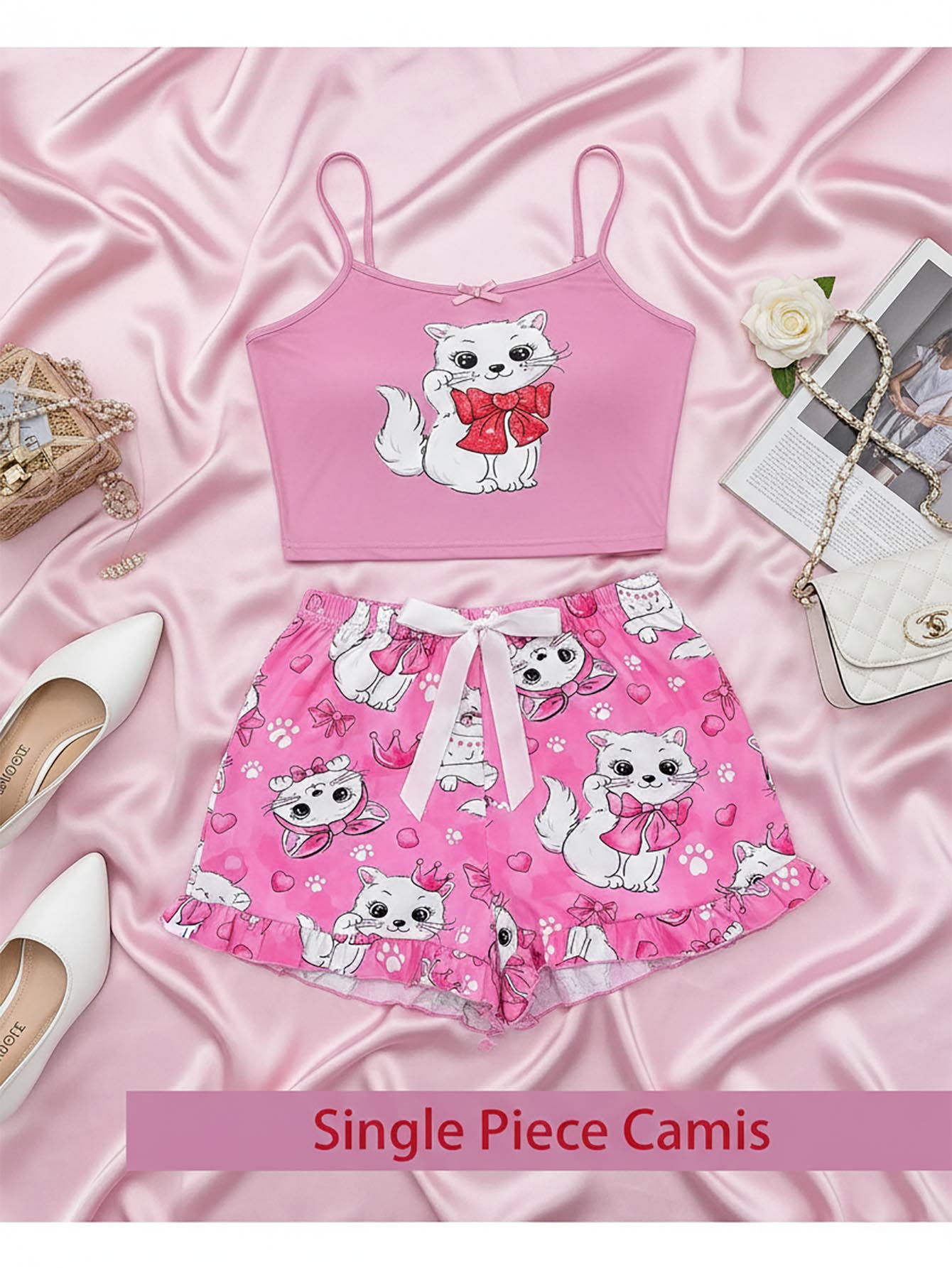 بلوزة كاميسول نسائية مزينة بفيونكة على شكل قطة لطيفة، مناسبة لملابس النوم والعطلات.