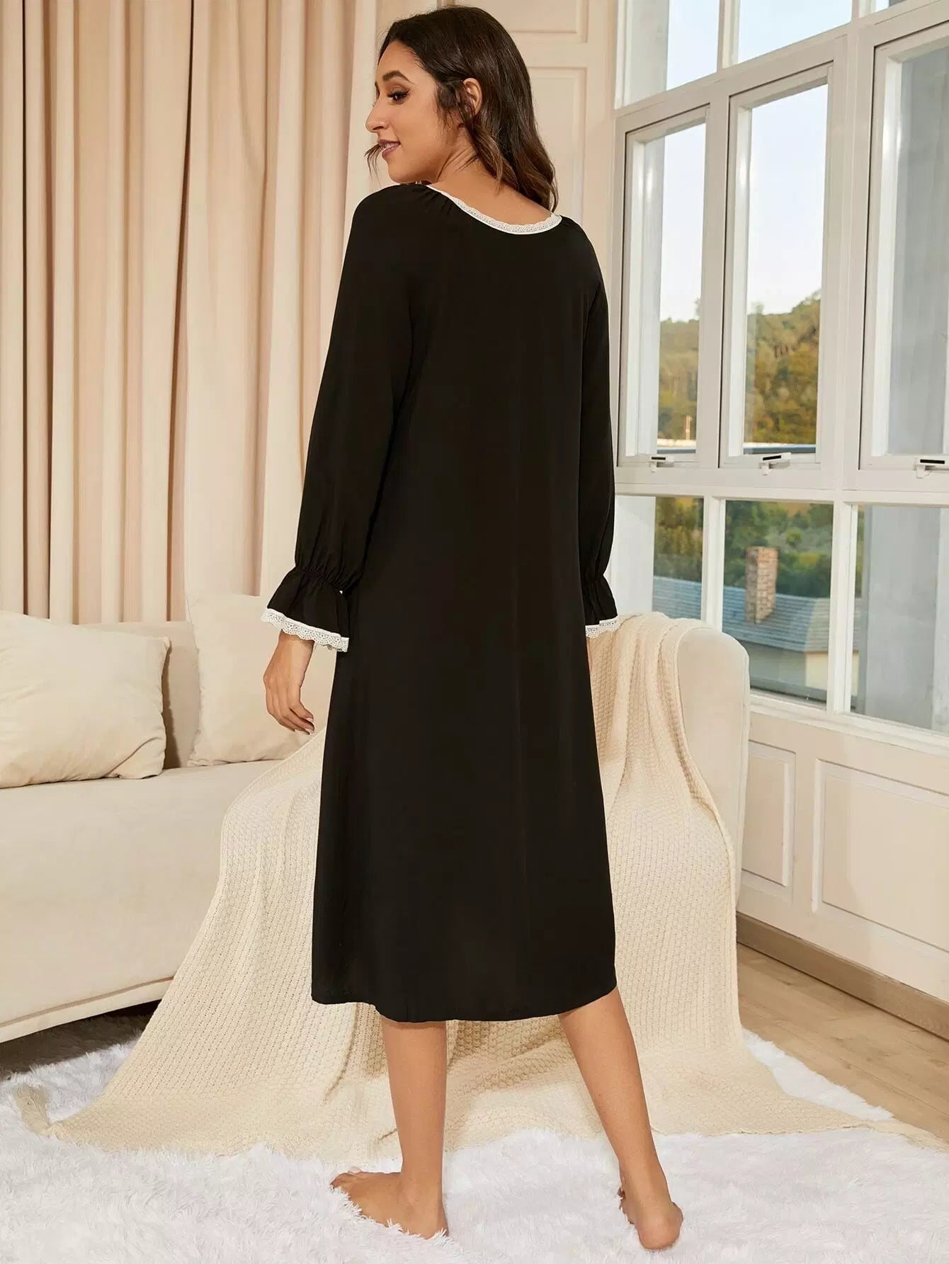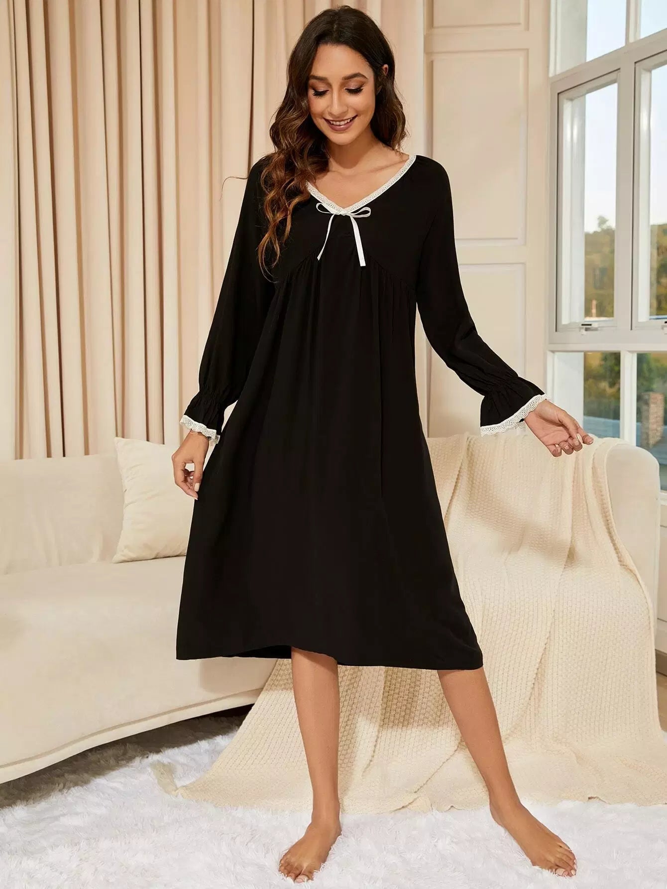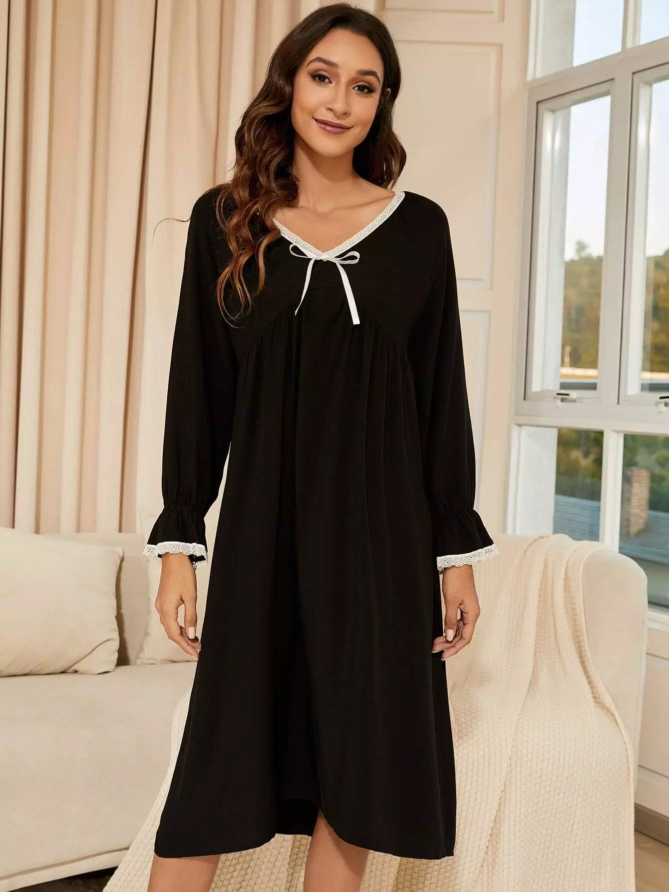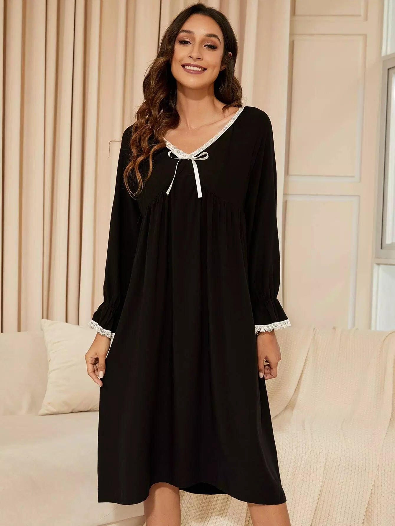 فستان نوم مزين بعقدة أمامية بلون مغلف بلون مغاير