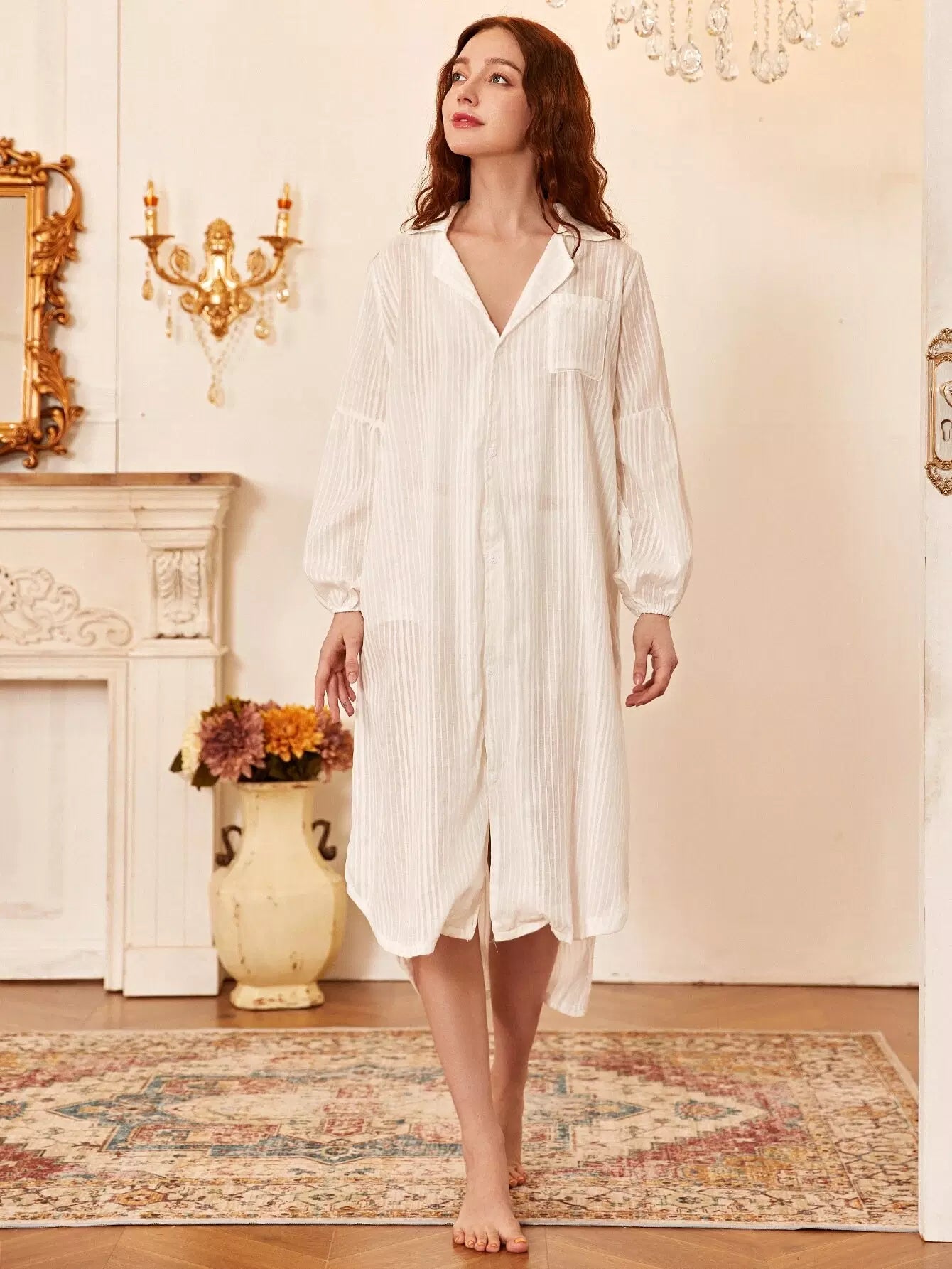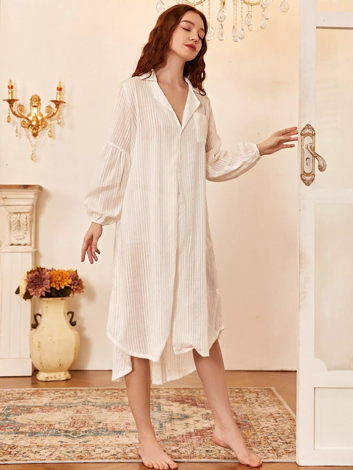 فستان ليل شفاف بأزرار أمامي بأزرار