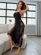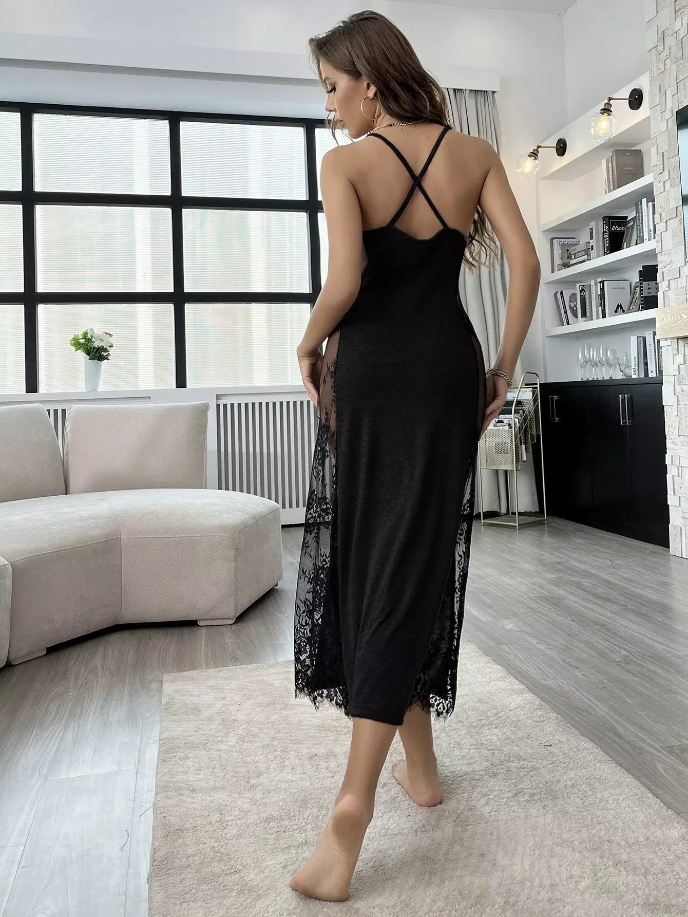 فستان دانتيل بحمالات من الدانتيل بلون مغاير
