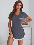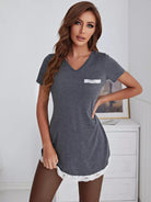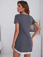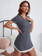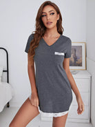 فستان نوم برقبة على شكل V دانتيل بلون مغاير