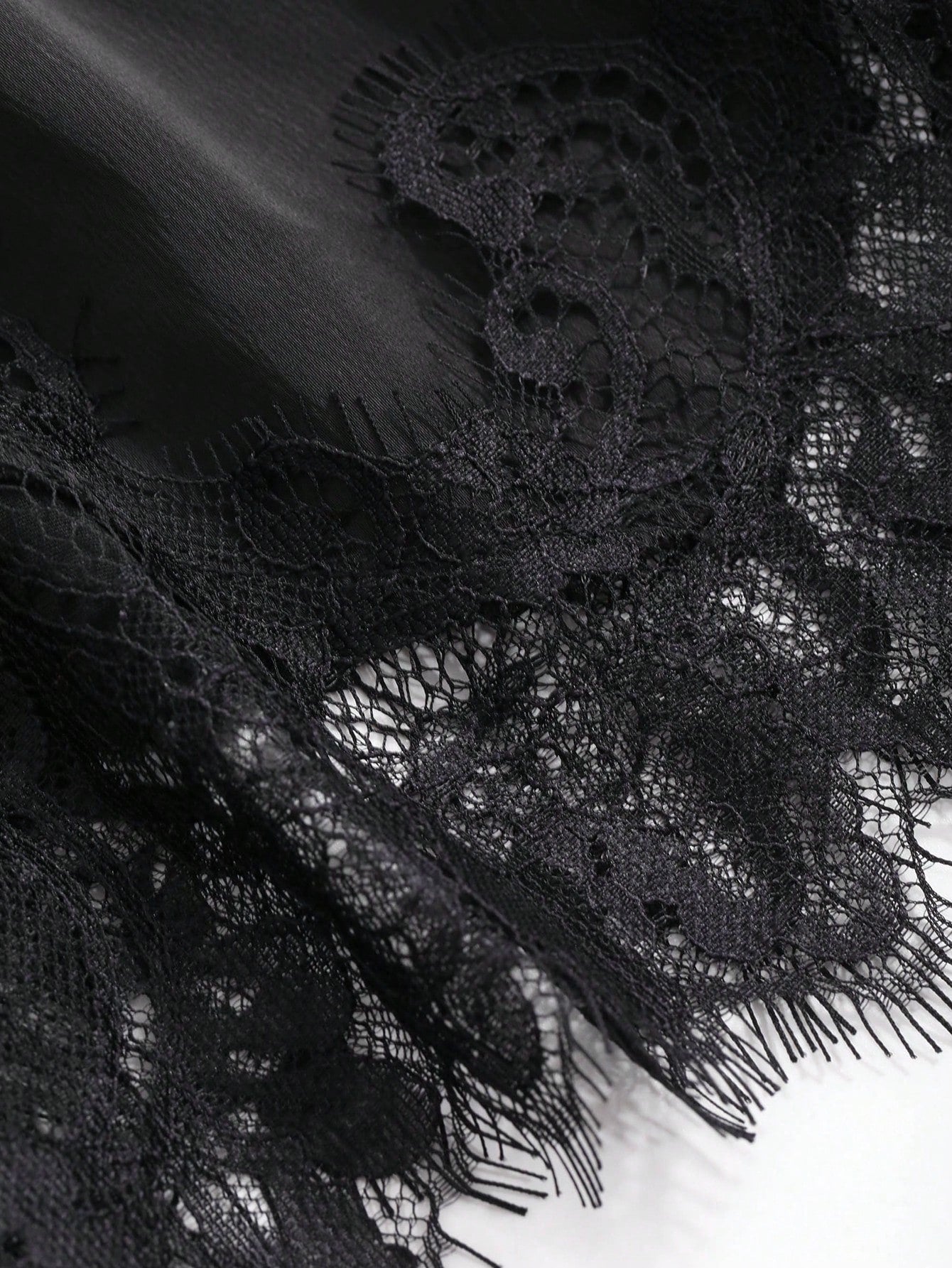 women DAZY Strappy Crossed Hollow Out Satin & Lace Patchwork Sexy Backless Camisole Nightgown Pajama
