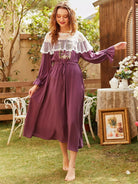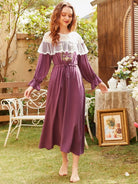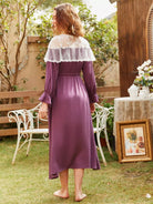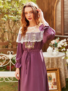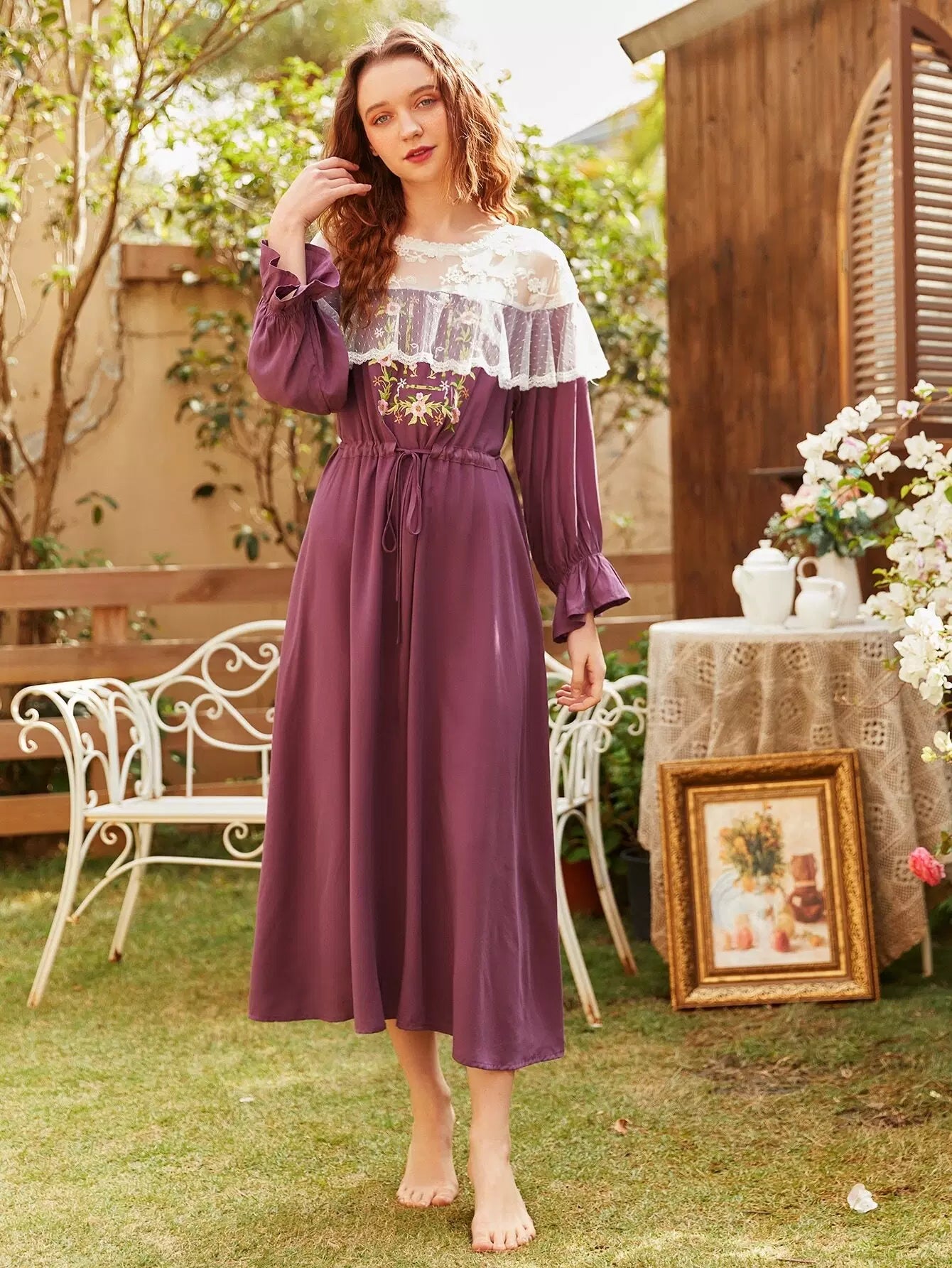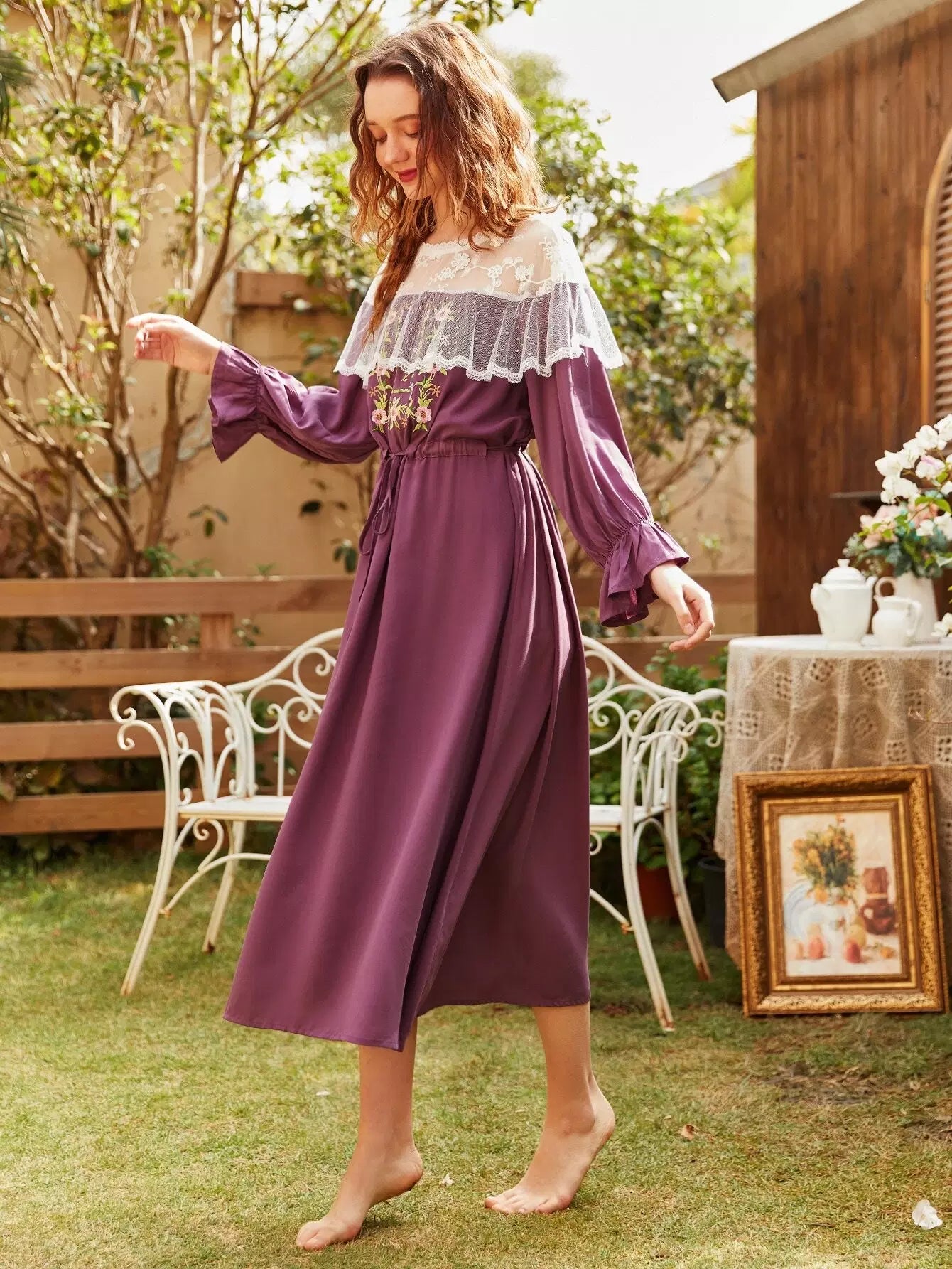 فستان نوم مزين بتطريزات زهرية وشبكة برباط رباط