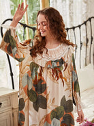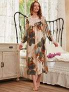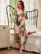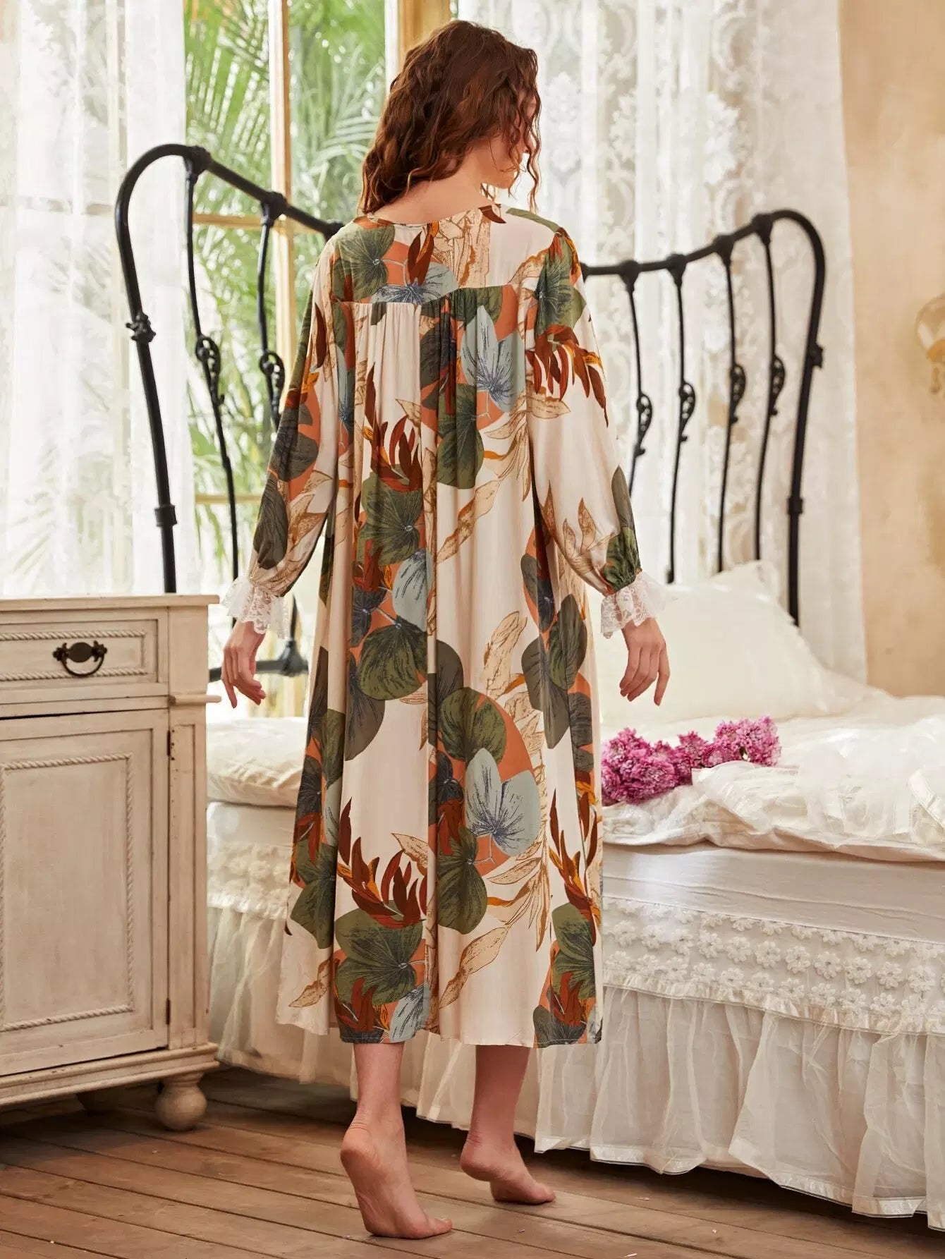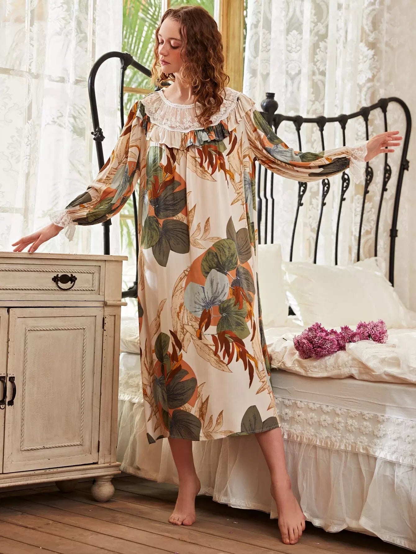 فستان سهرة مزين بطبعات زهرية من الدانتيل المكشكش