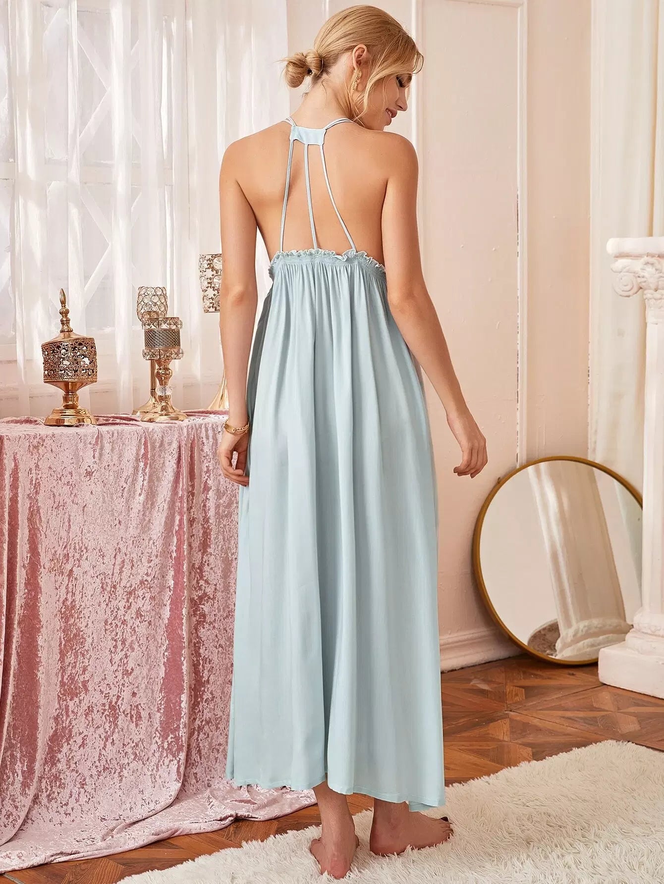 للنساء - فستان نوم مكشوف الظهر مزين بكشكشة