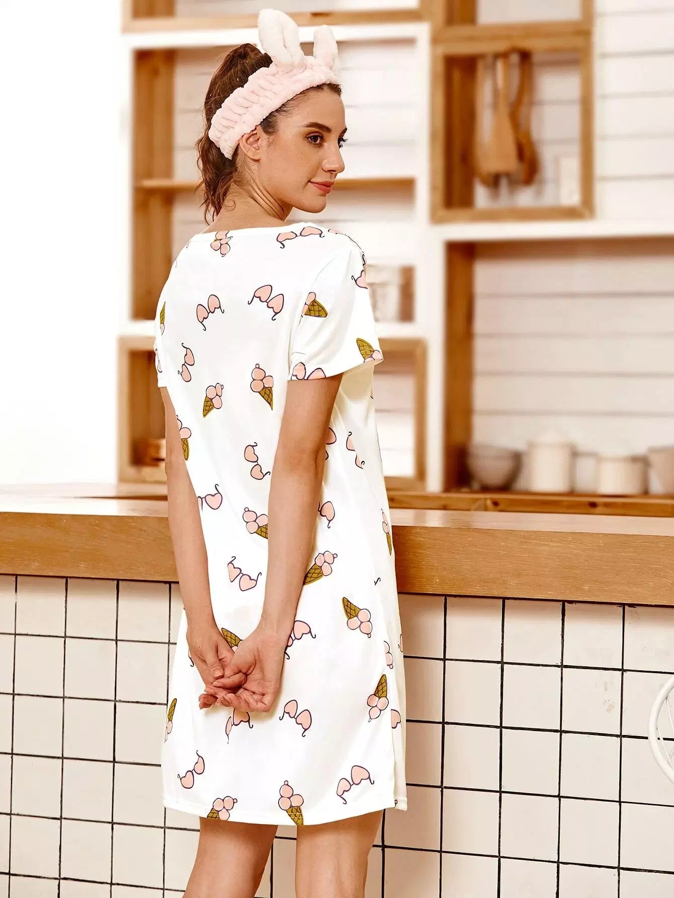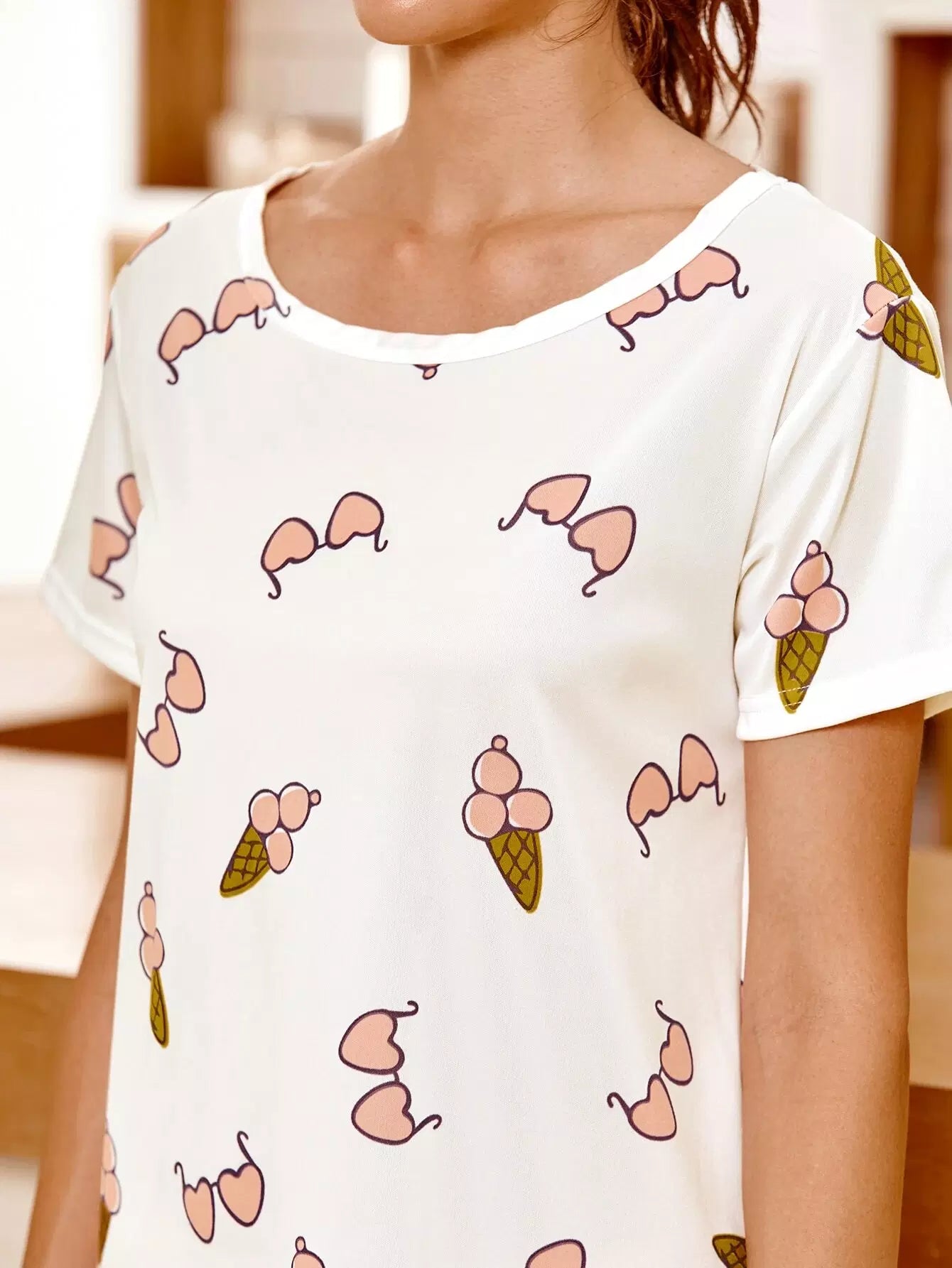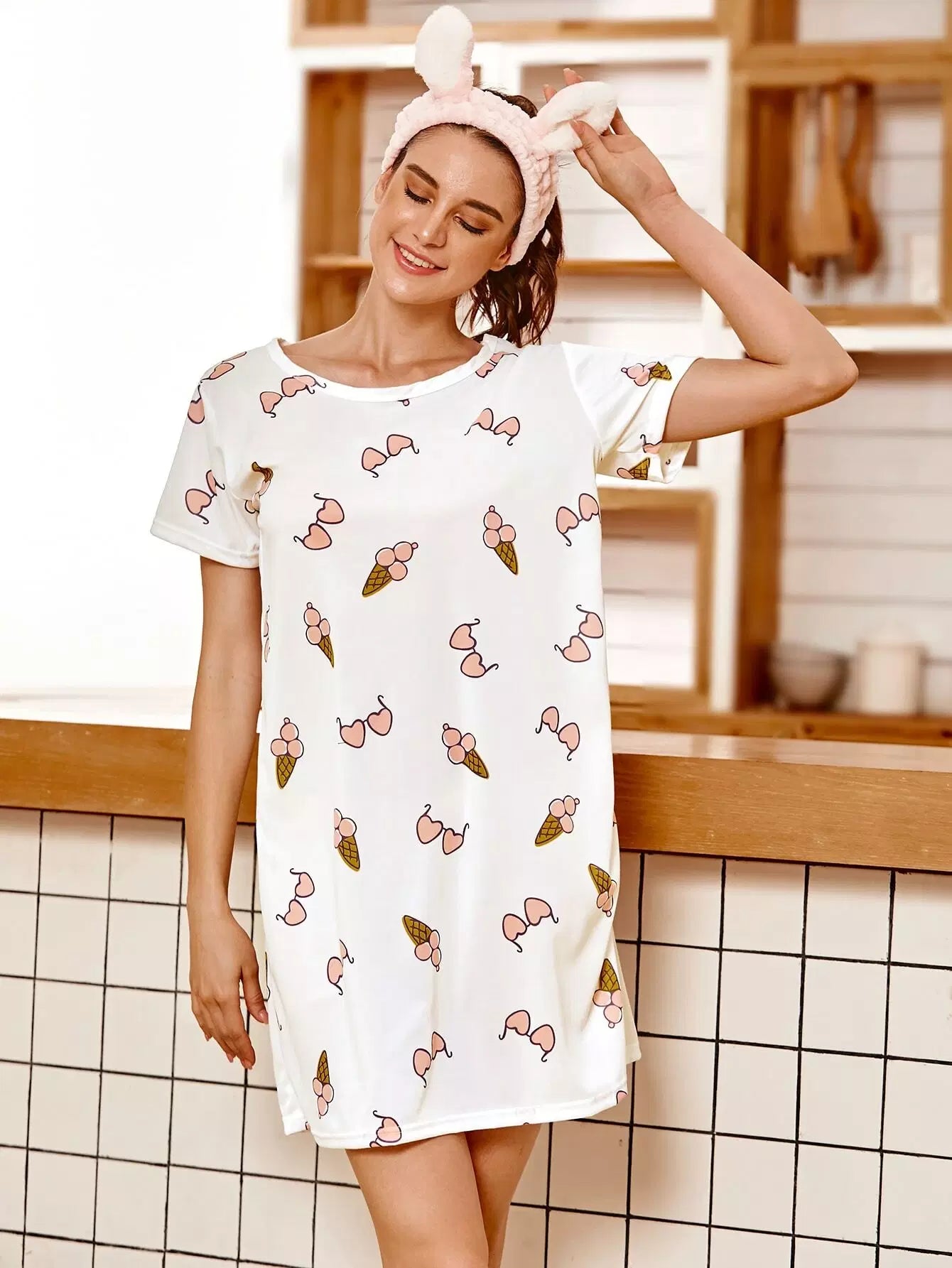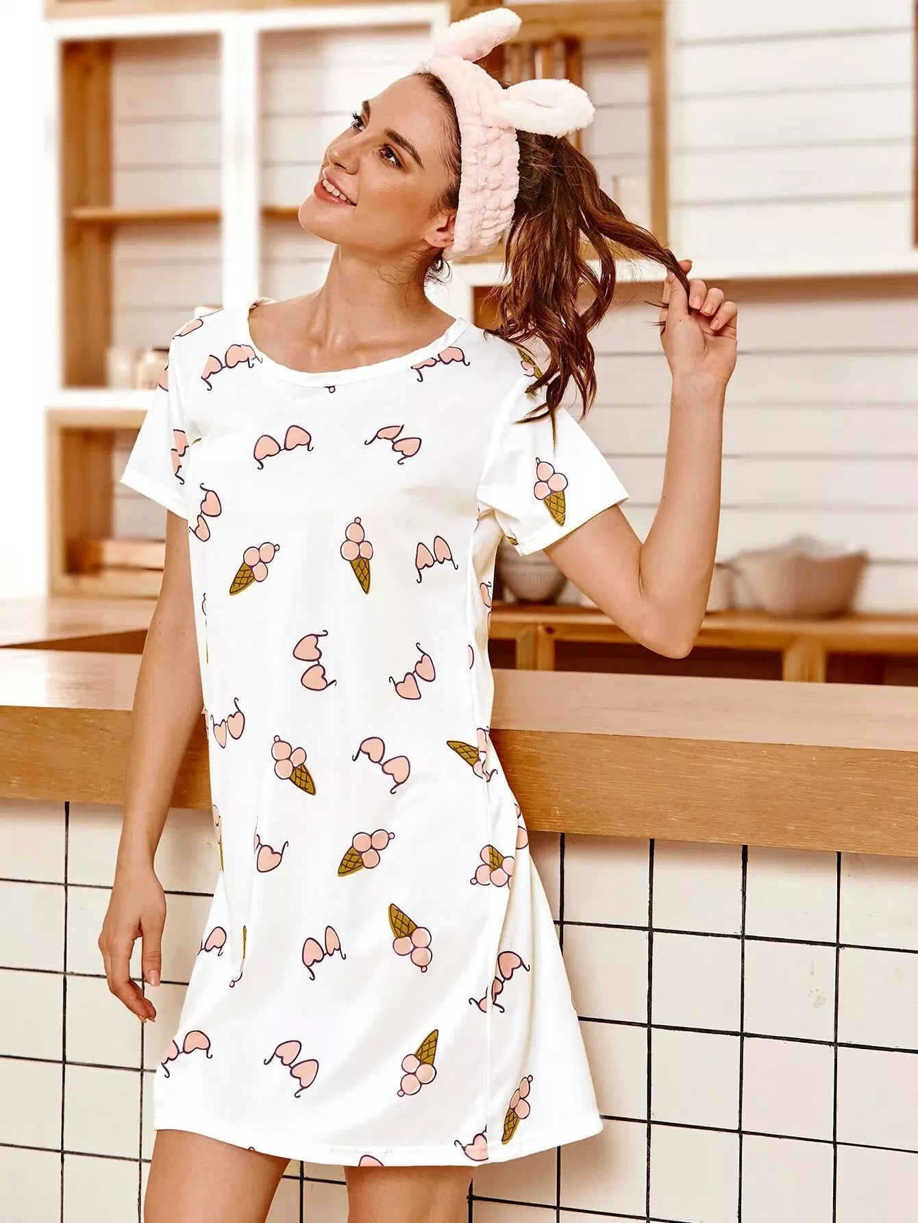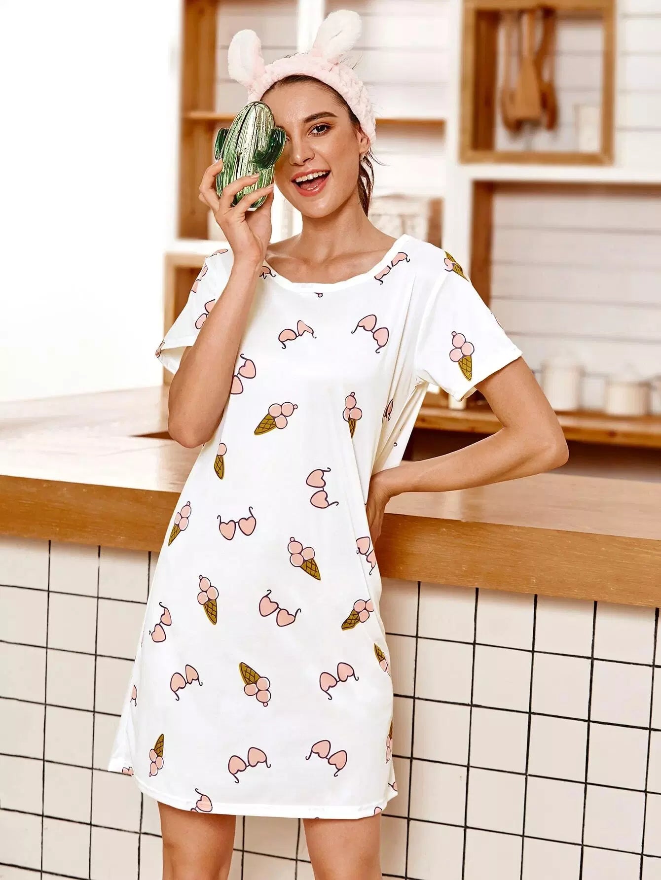 فستان صالة مطبوع عليه مخروط الآيس كريم والنظارات