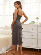 فستان بفتحة من الدانتيل مقسم على الفخذين من الداخل والخارج