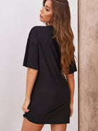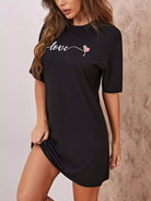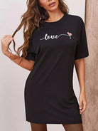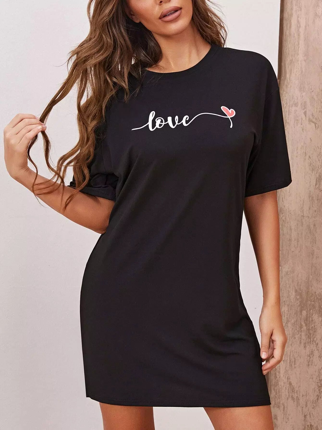 فستان سهرة ليلي منسدل الكتفين مطبوع عليه حروف وقلب