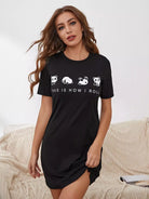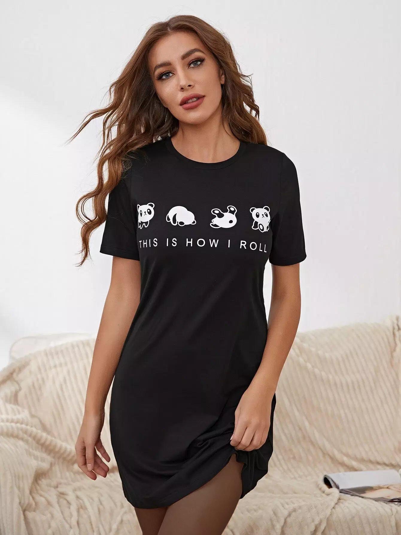 فستان سهرة بشعار ورسومات كارتونية جرافيك ليلي