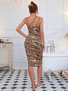 فستان بحزام مزدوج مخطط بحزامين على شكل نمر
