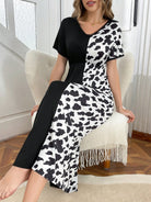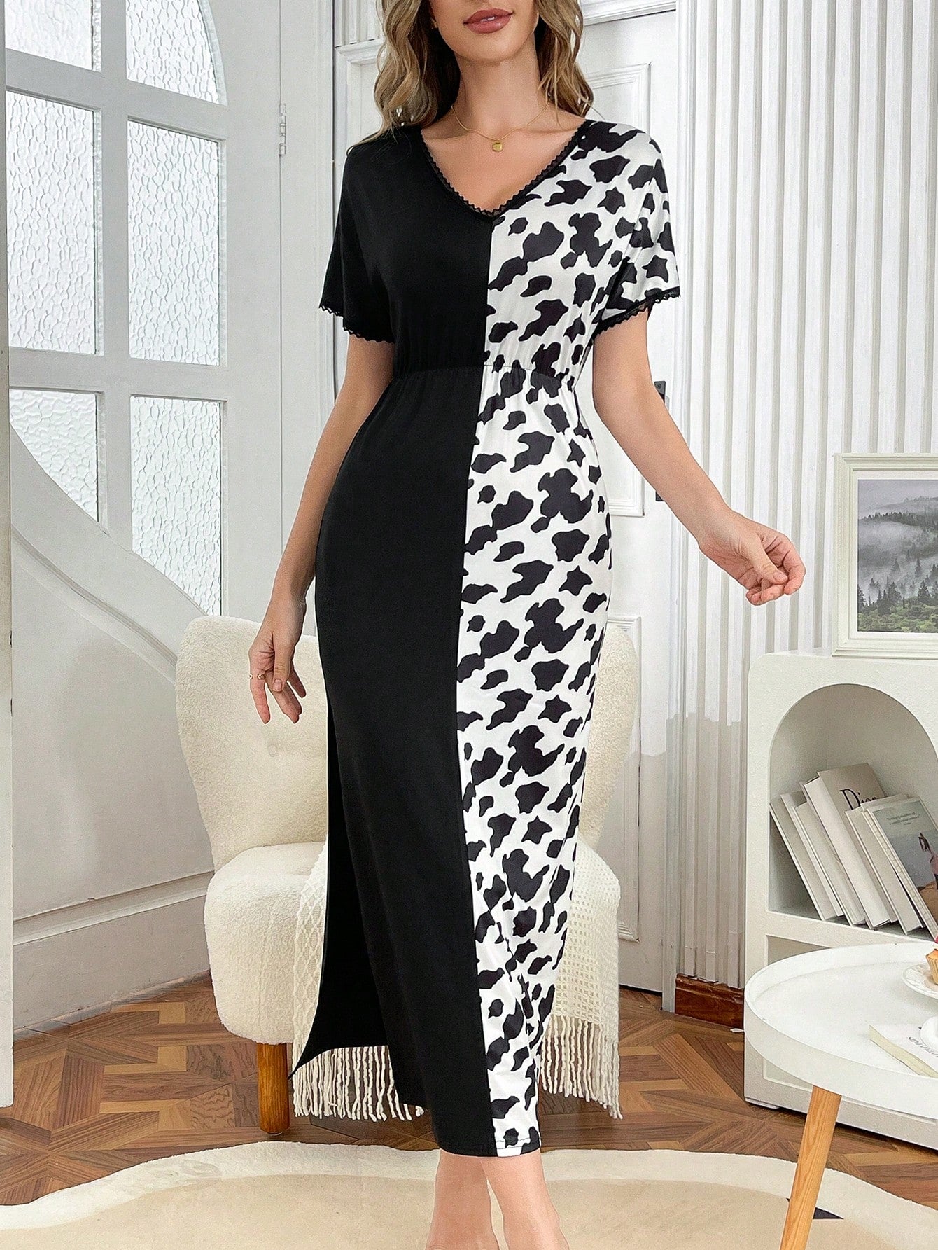 قميص نوم نسائي بطبعة بقرة مرقعة وفتحة جانبية