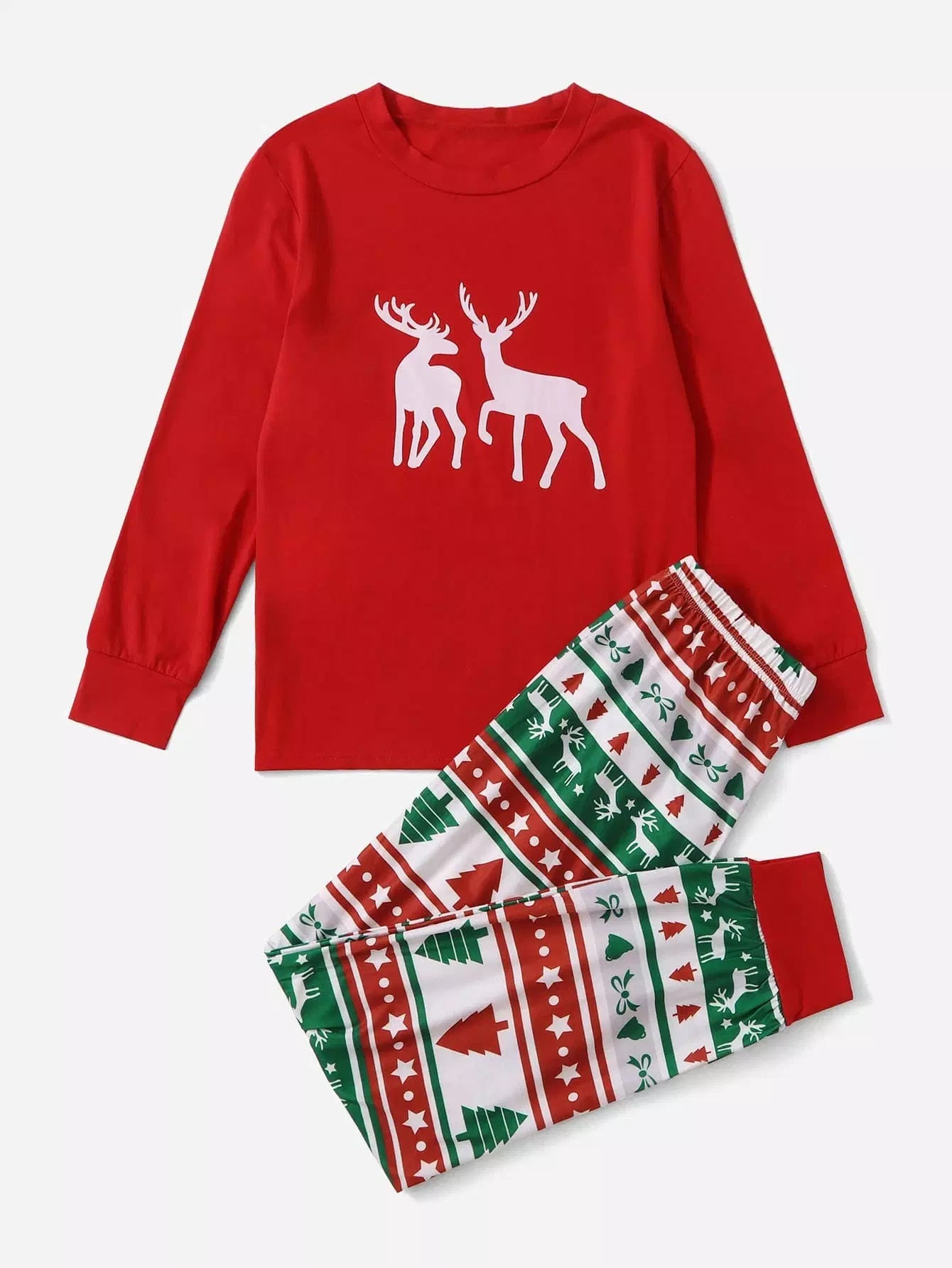 1 قطعة بلوزة نوم بطبعة الكريسماس و1 قطعة بنطلون نوم بطبعة الكريسماس