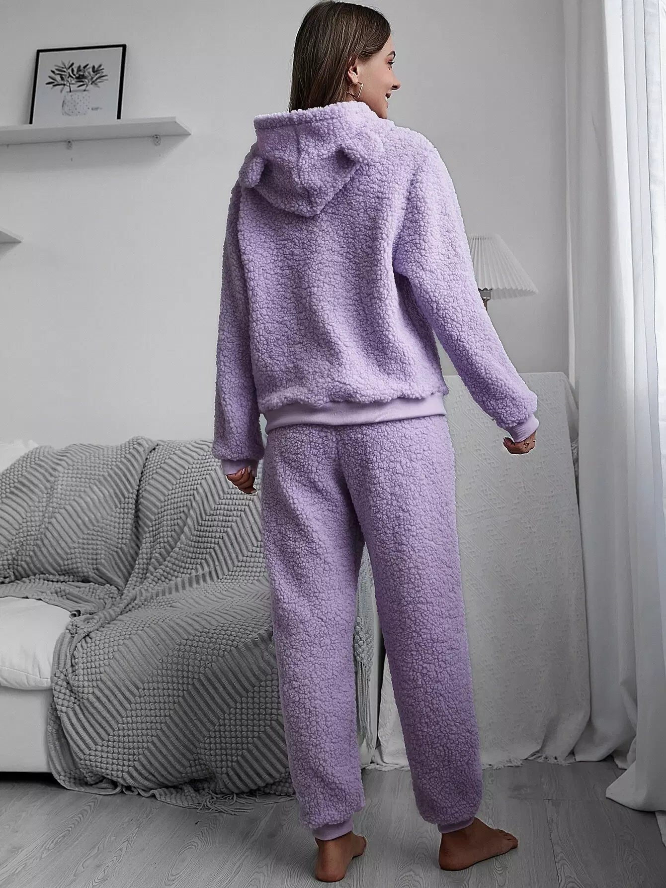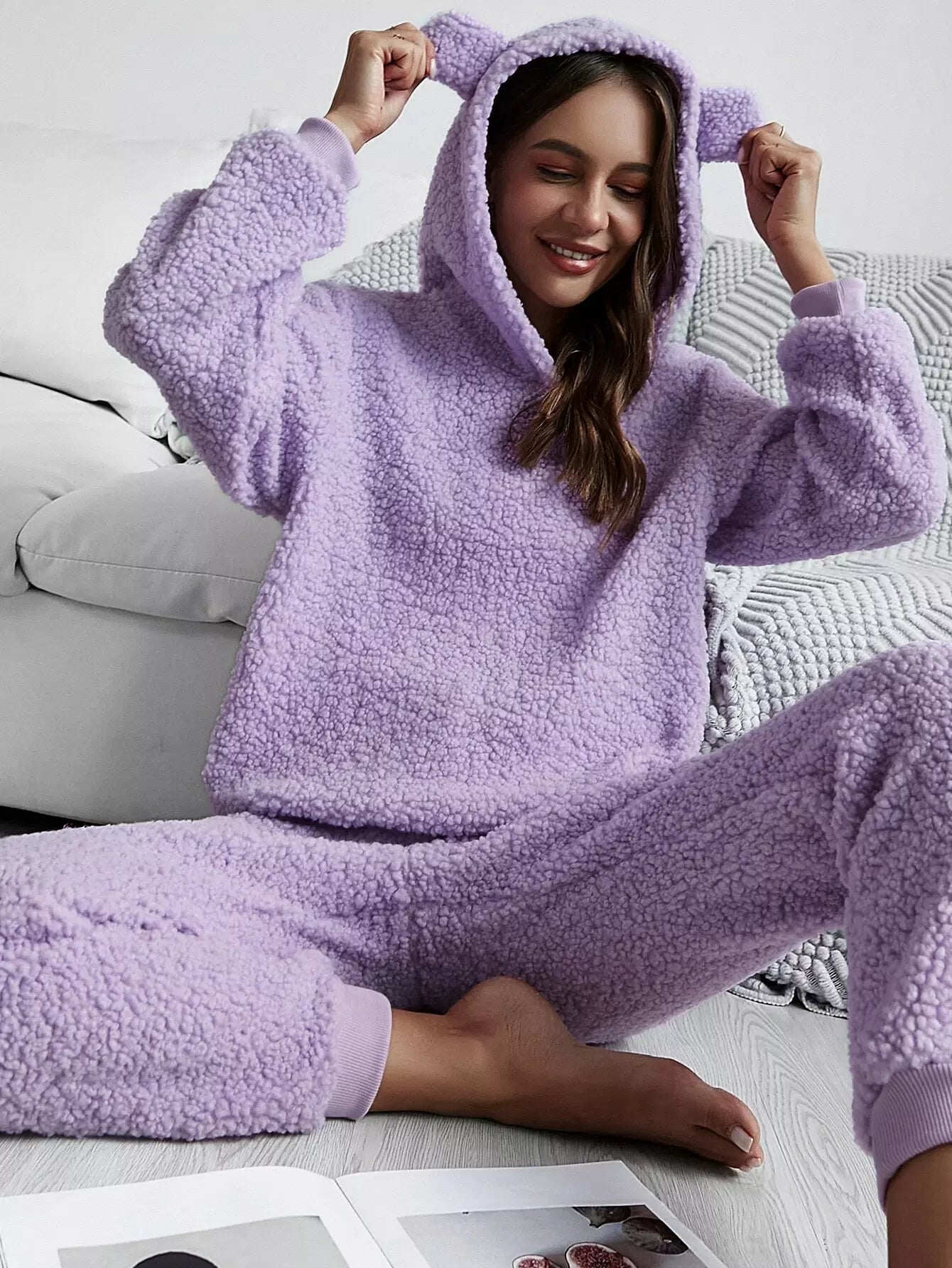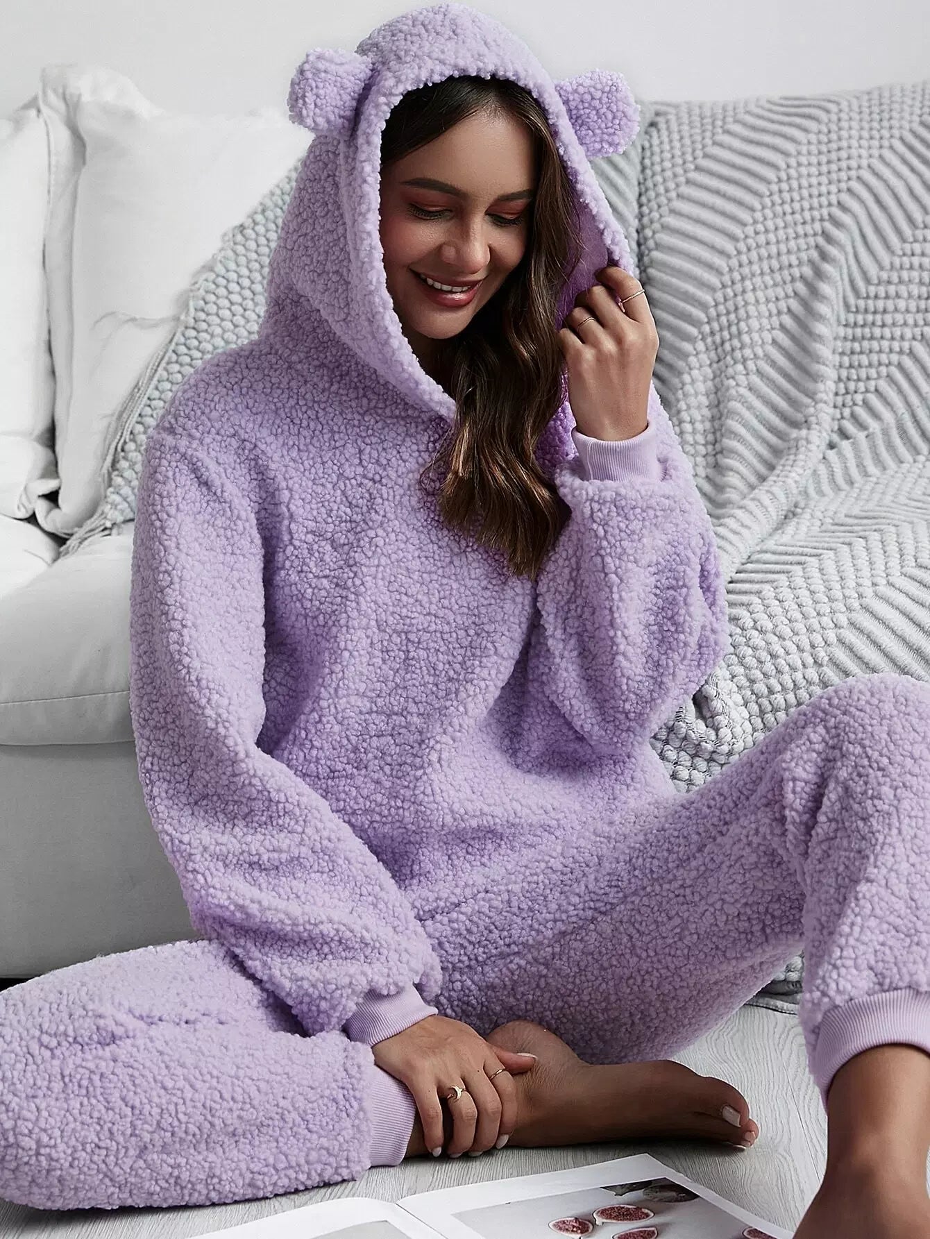 طقم بيجامة بغطاء للرأس بتصميم ثلاثي الأبعاد بأذنين