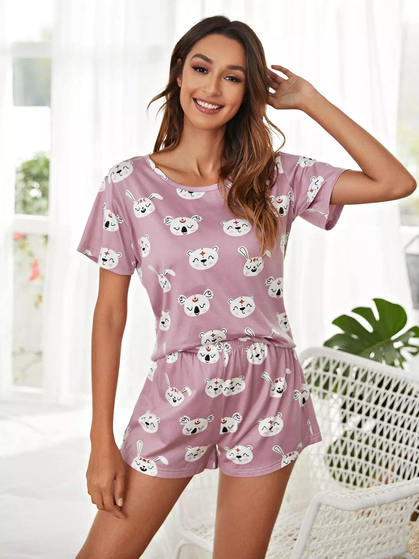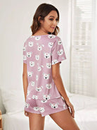 للنساء - طقم بيجامة برسوم كارتونية بالكامل مع غطاء للعين