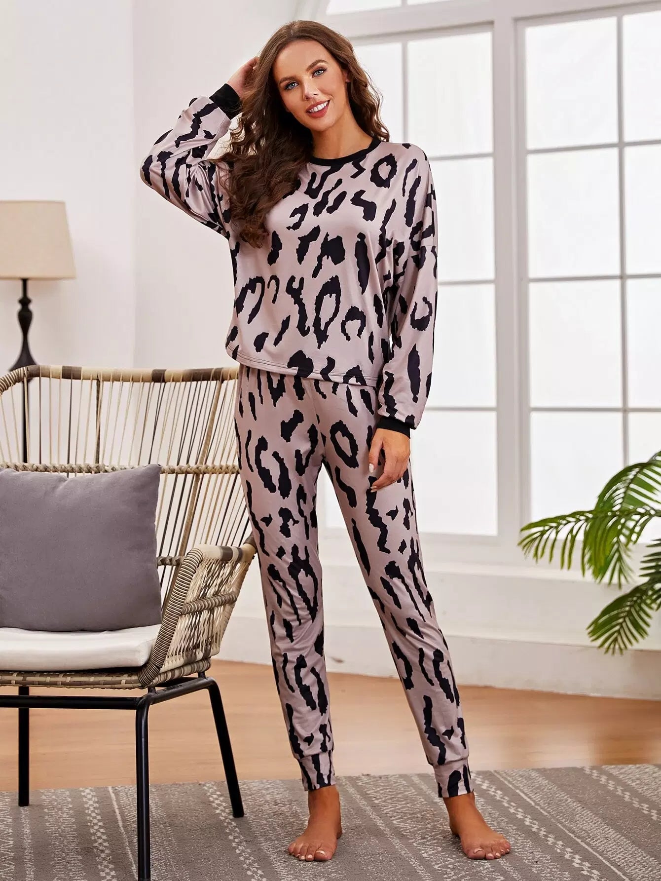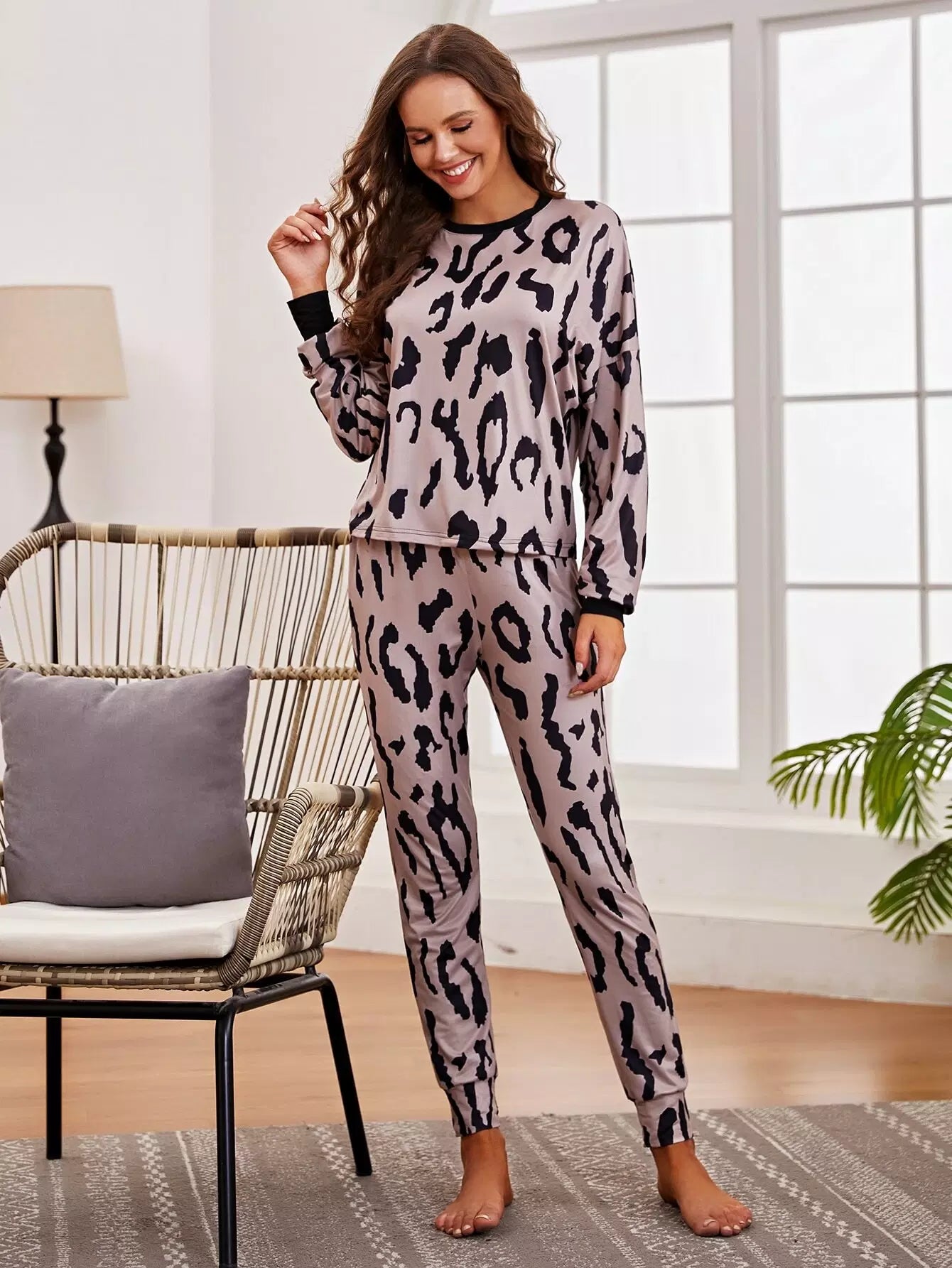 طقم بيجامة بنطلون وبلوزة مطبوع عليها بالكامل