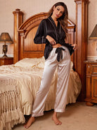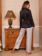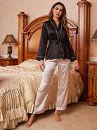 طقم بيجاما ستان بلوز وبنطلون مخطط بدون حزام
