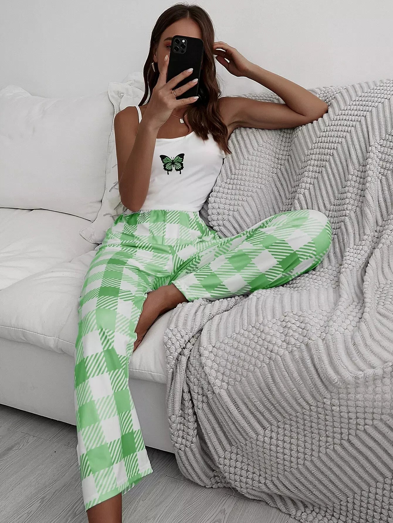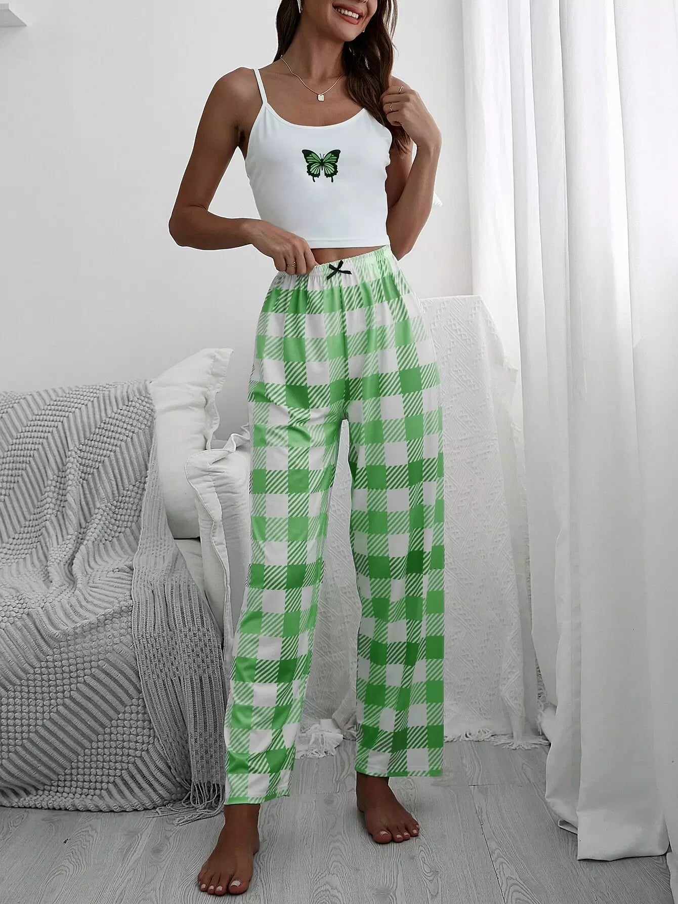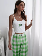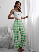 بلوزة كامي بطبعة فراشات وبنطلون منقوش بعقدة من الأمام