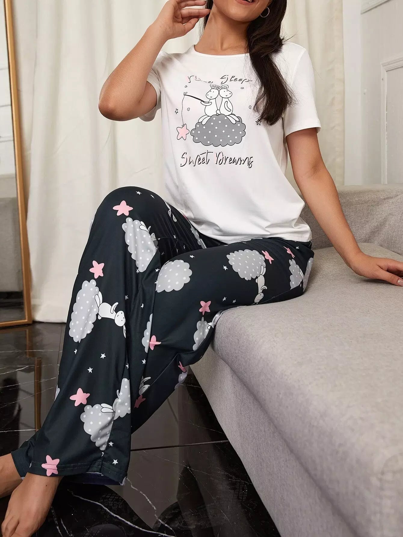 للنساء - طقم بي جيه برسومات كرتونية ورسائل