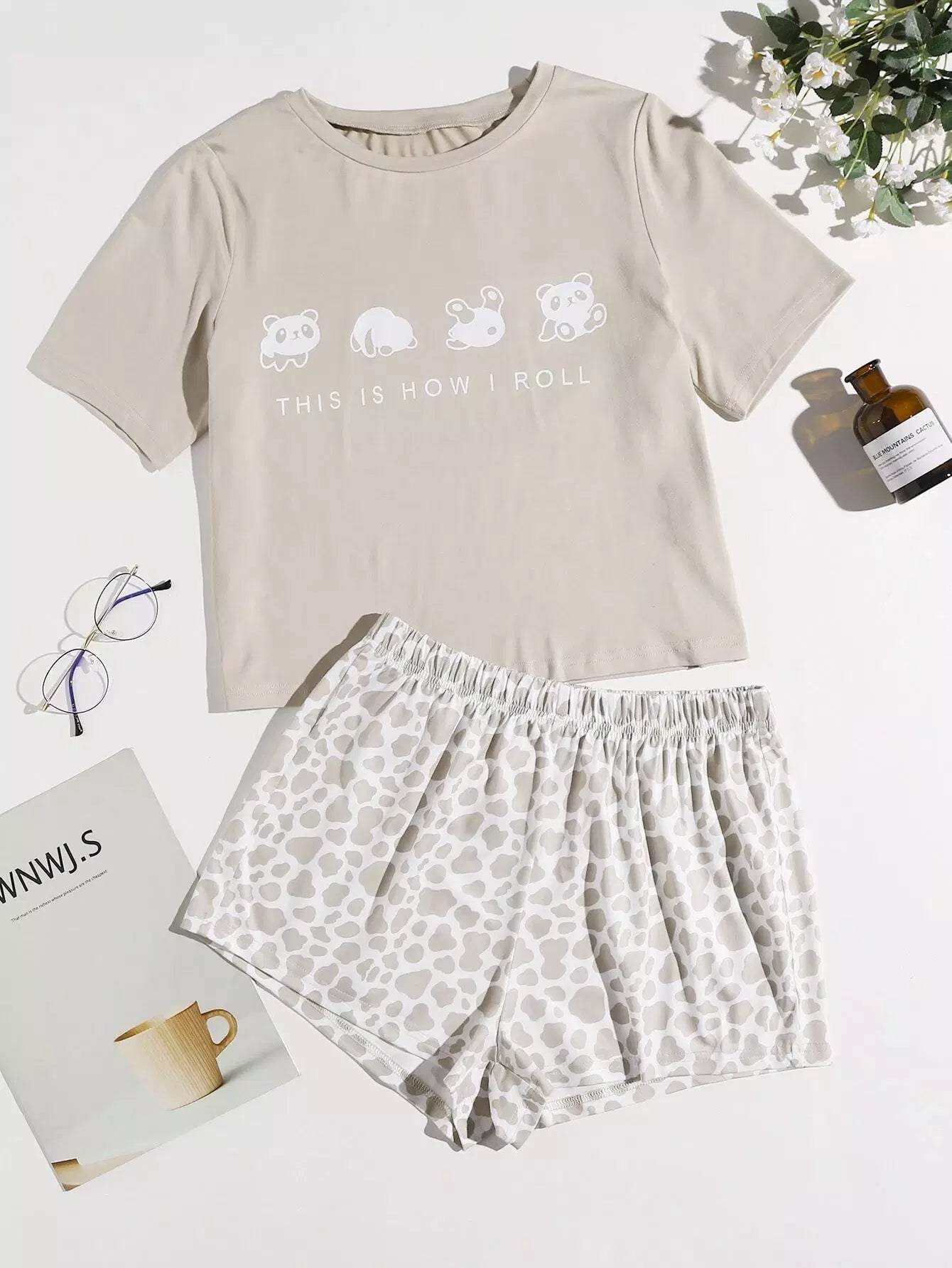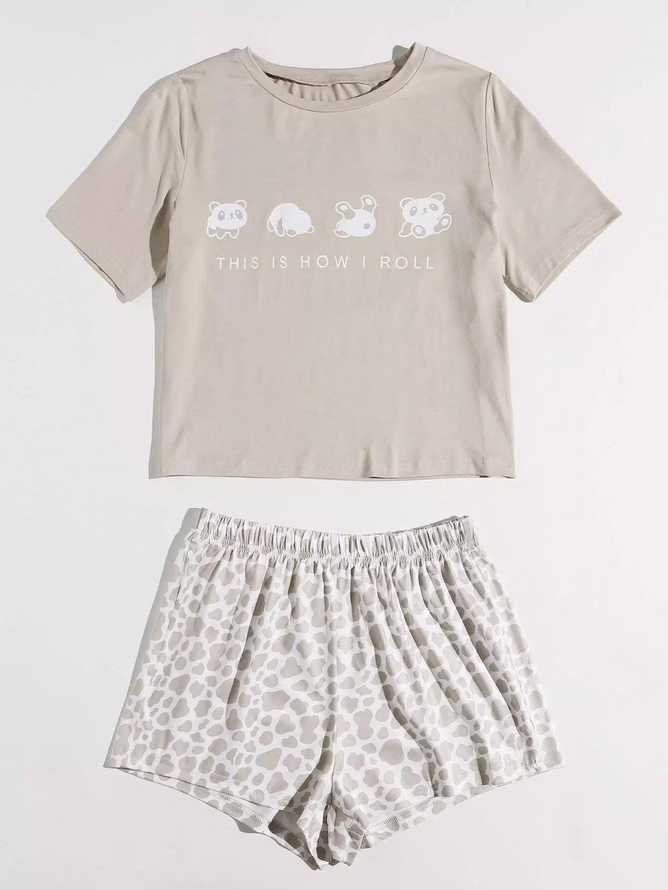 طقم بيجامة كارتون باندا وشعار كارتون جرافيك