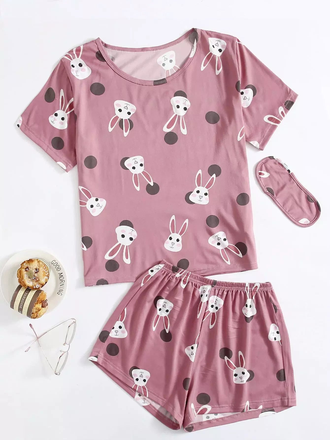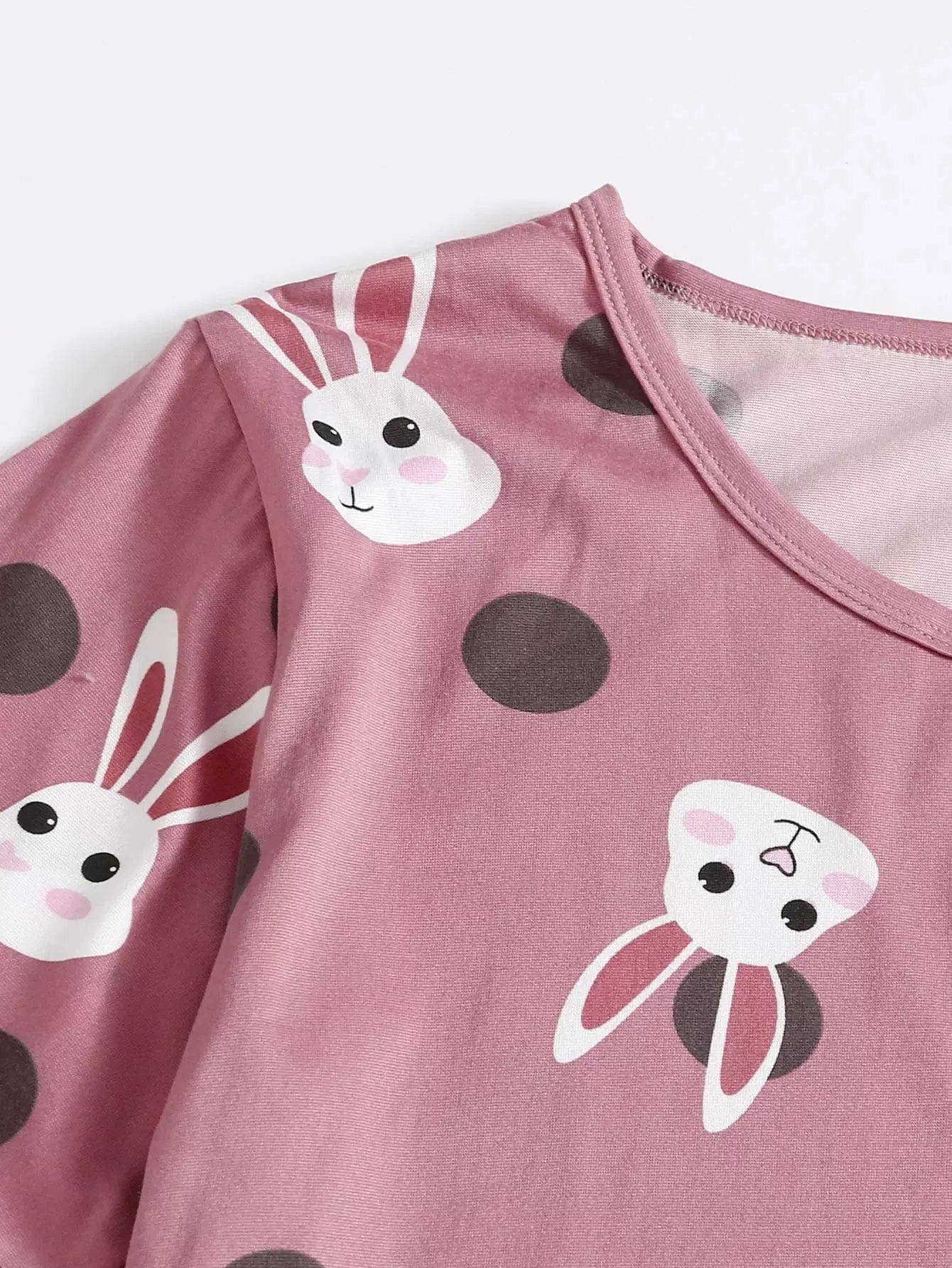 طقم بيجامة بطبعة أرنب كرتوني ونقشة البولكا دوت