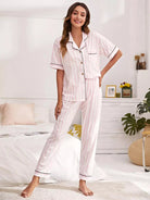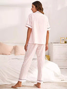 طقم بيجامة بنقشة مخططة بطباعة مخططة بلون مغاير