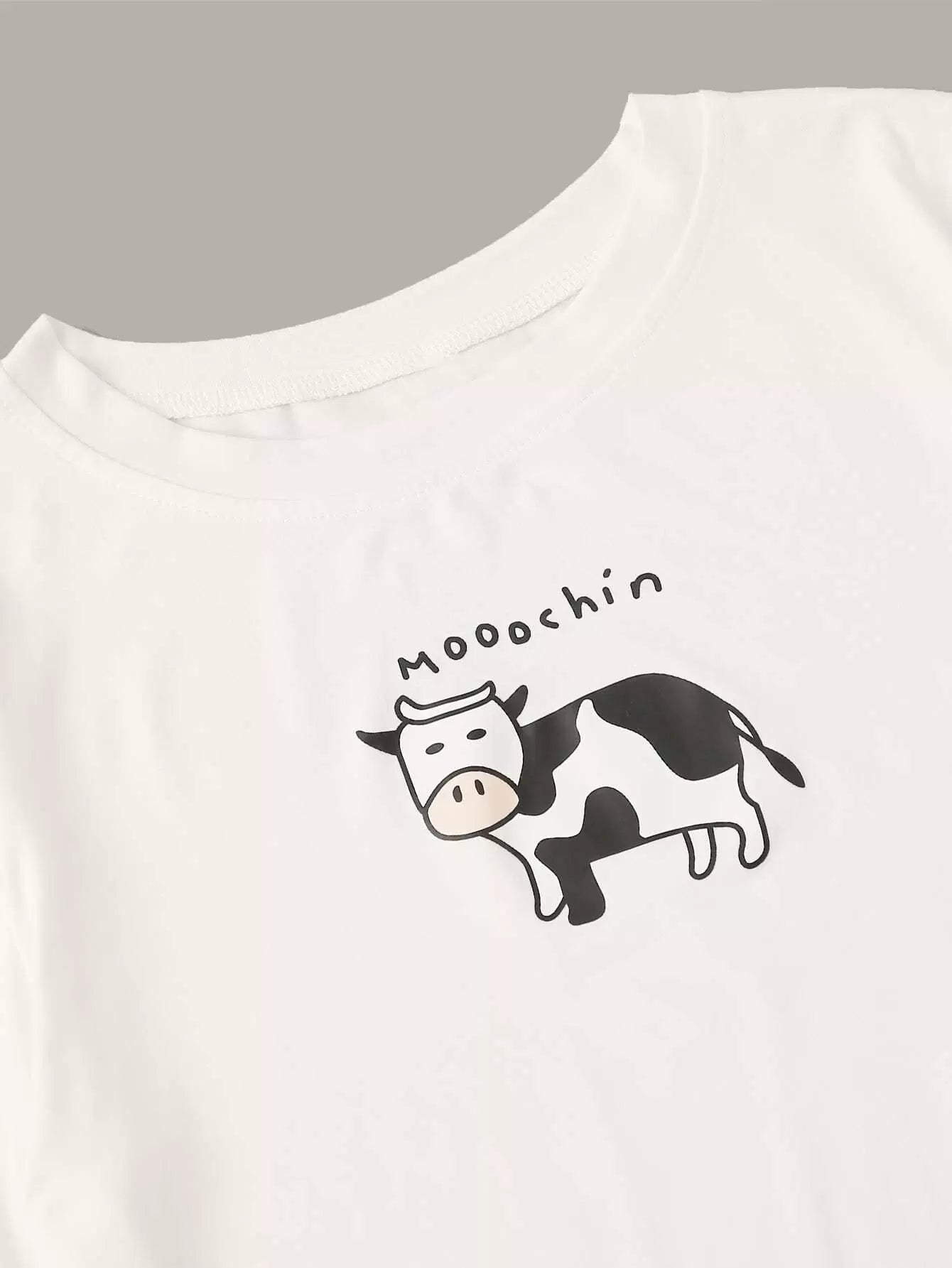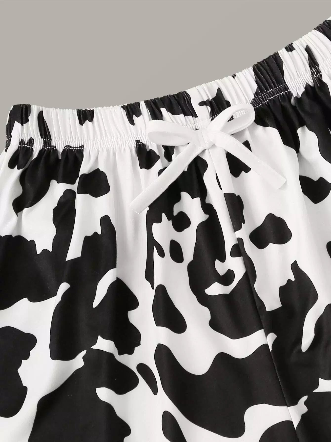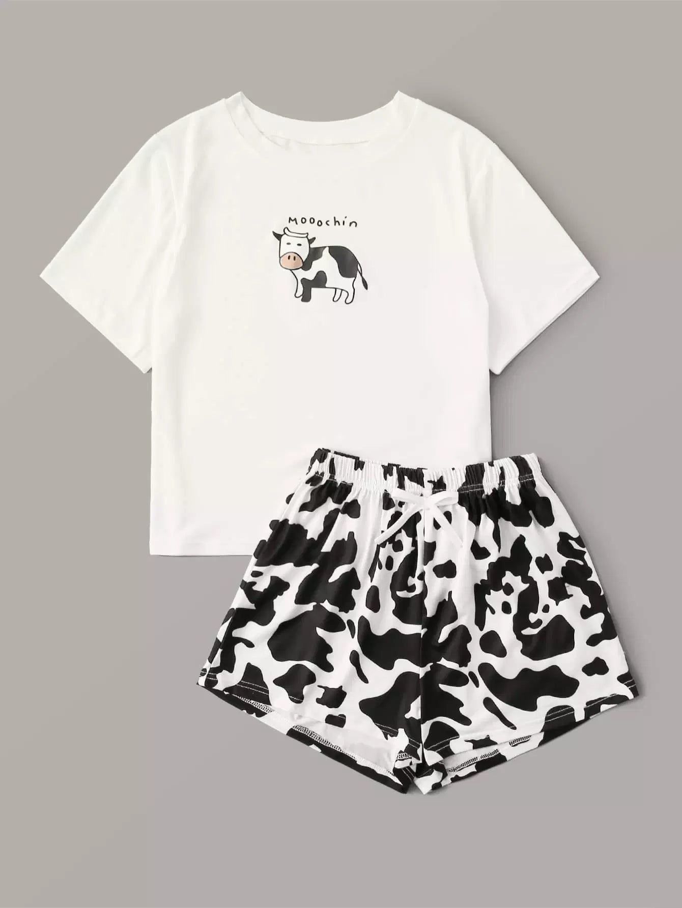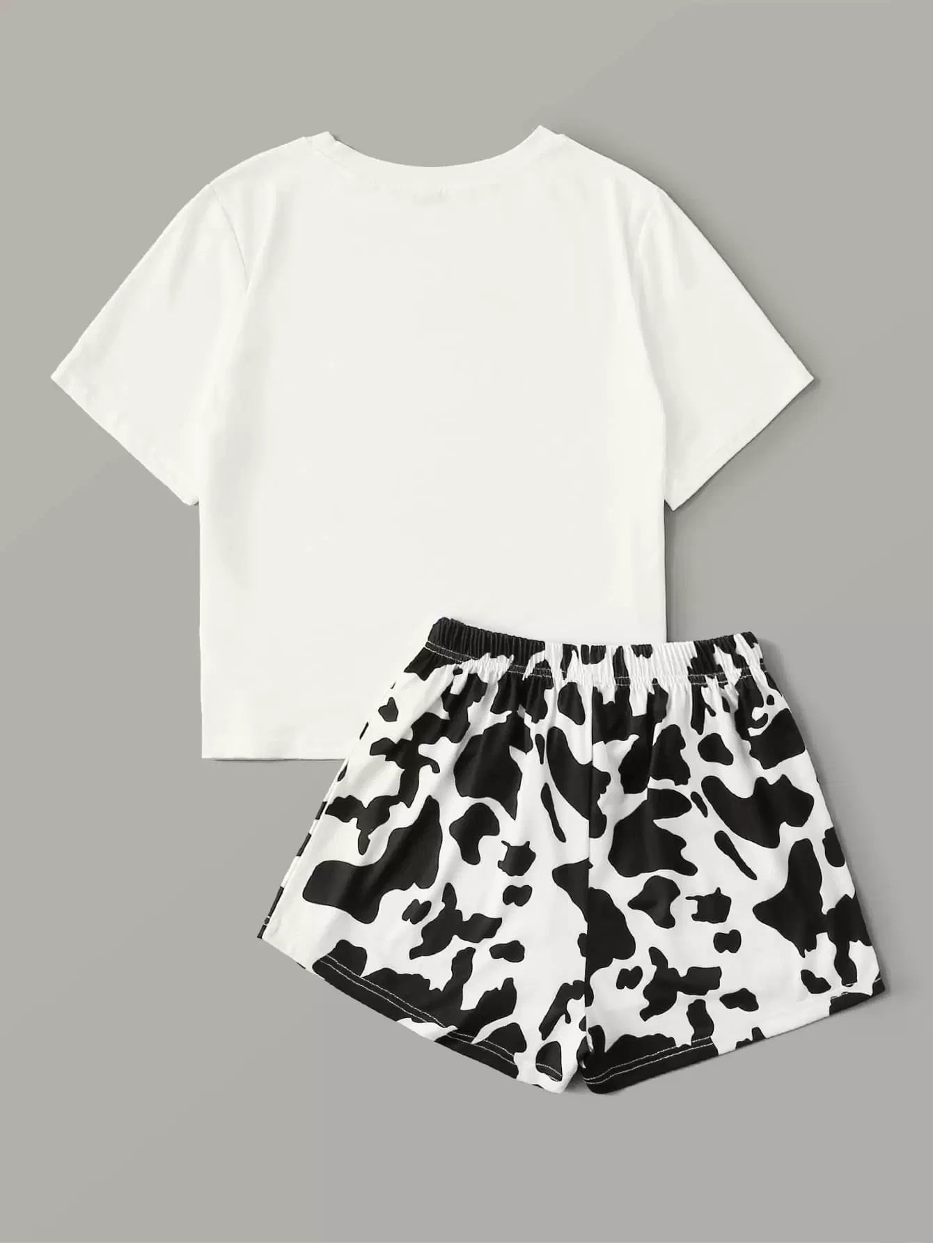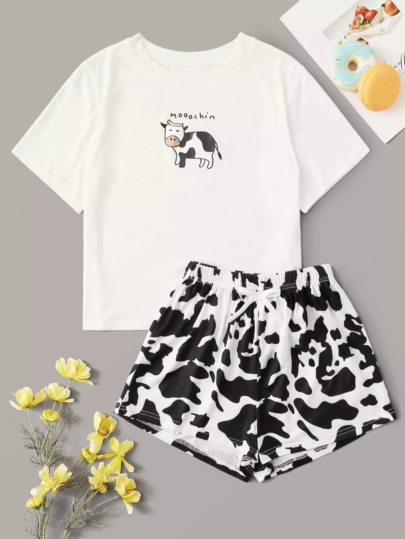 طقم تي شيرت مطبوع عليه طبعة بقرة وشورت بيجامة