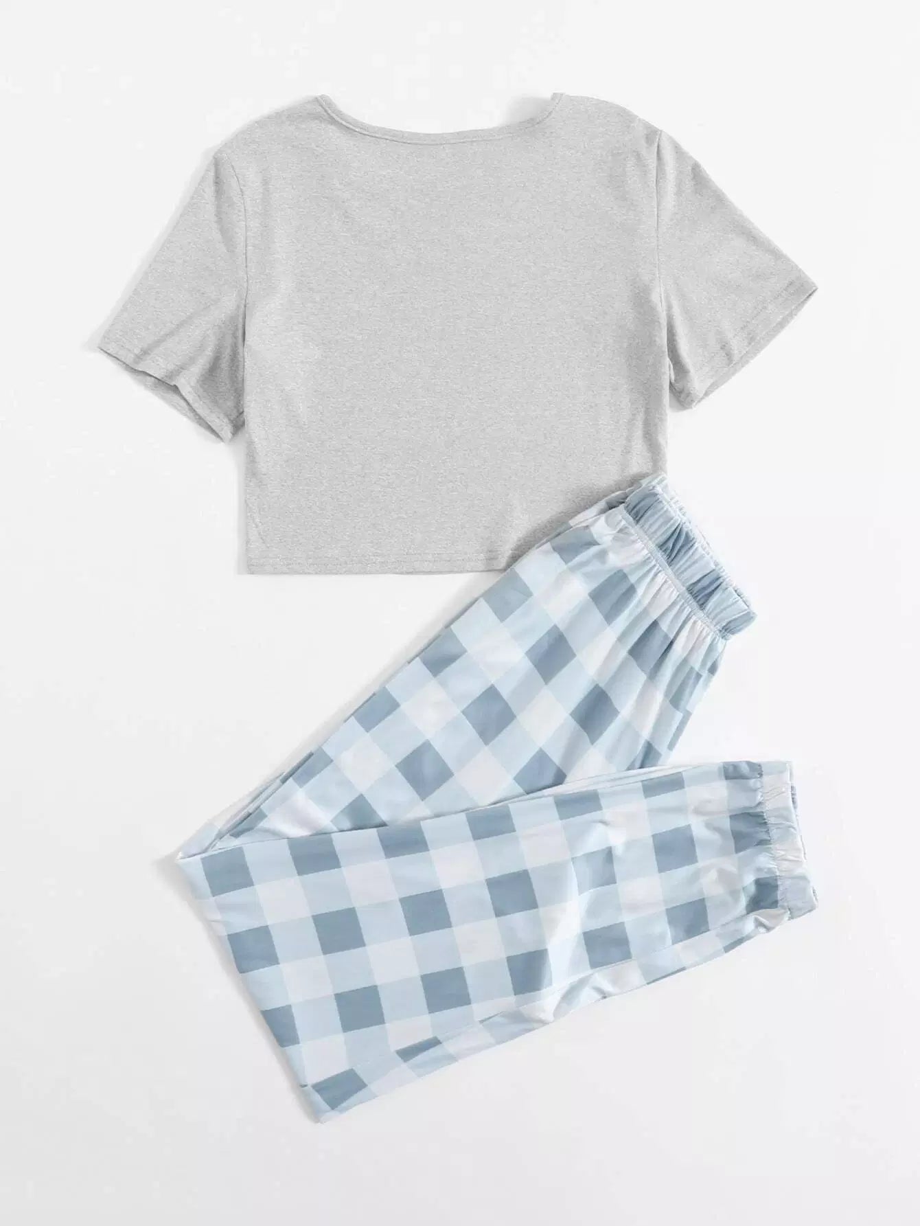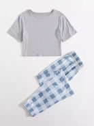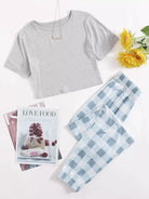 طقم بيجامة مكون من تي شيرت قصير وبنطلون بطبعة مربعات