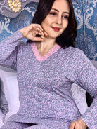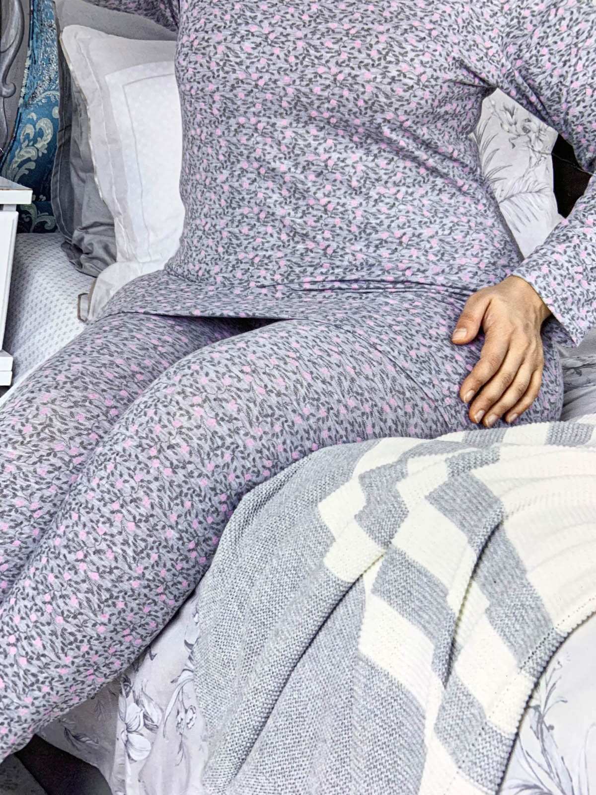 للنساء - بيجامة سماوية مع طباعة زهور وردية