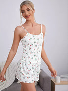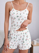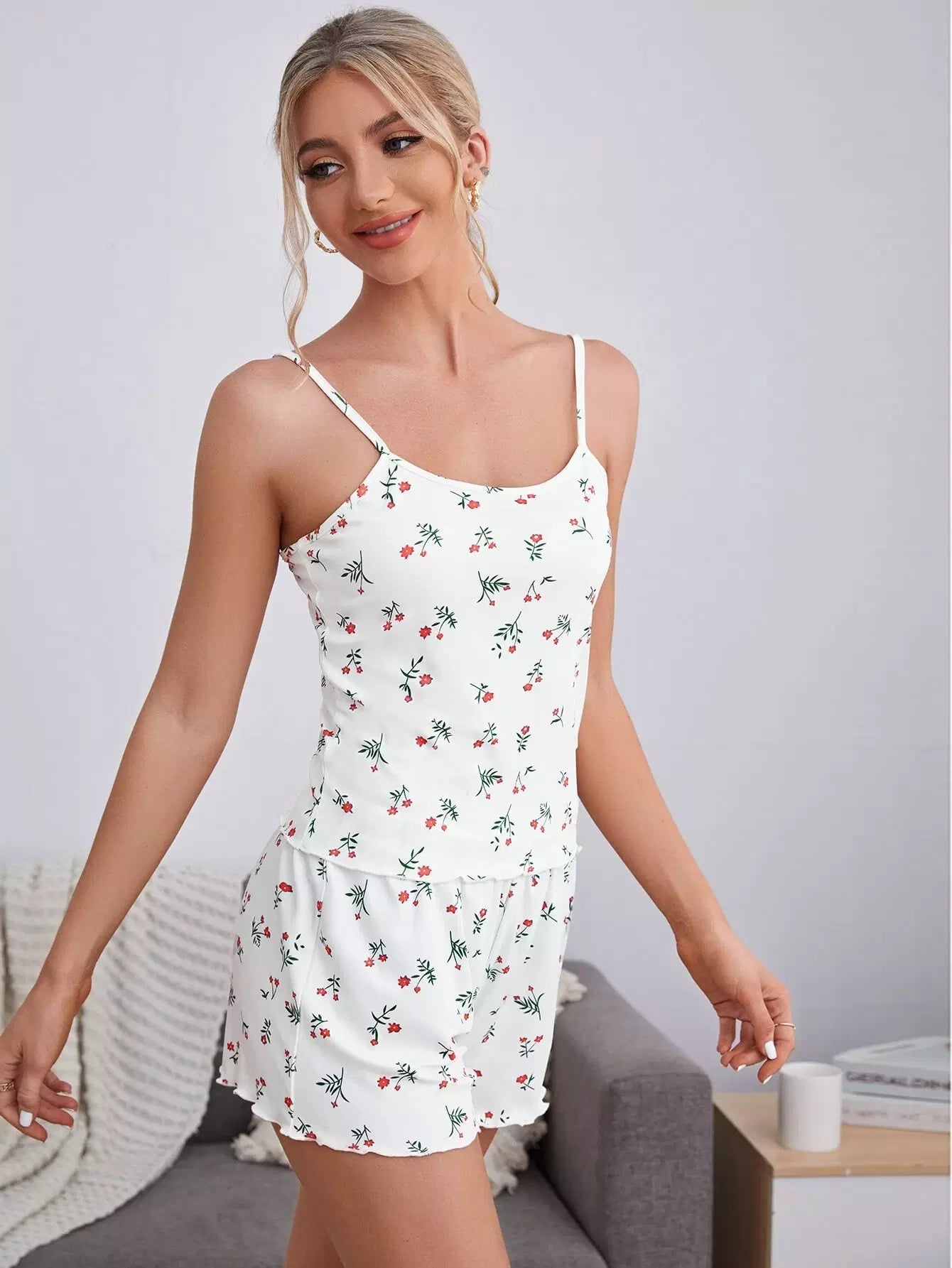 طقم بيجامة ديتسي بطبعة أزهار مزينة بالخس