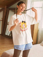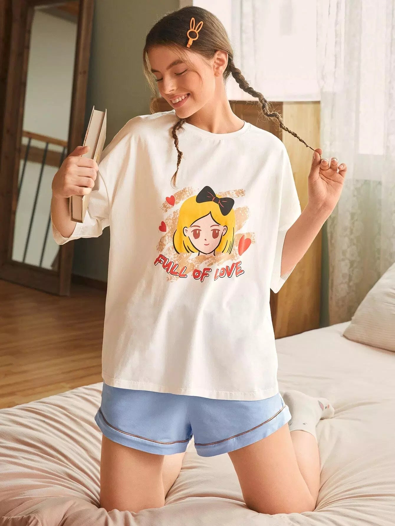 طقم بيجامة على شكل وحروف جرافيك بلوزة وشورت قصير