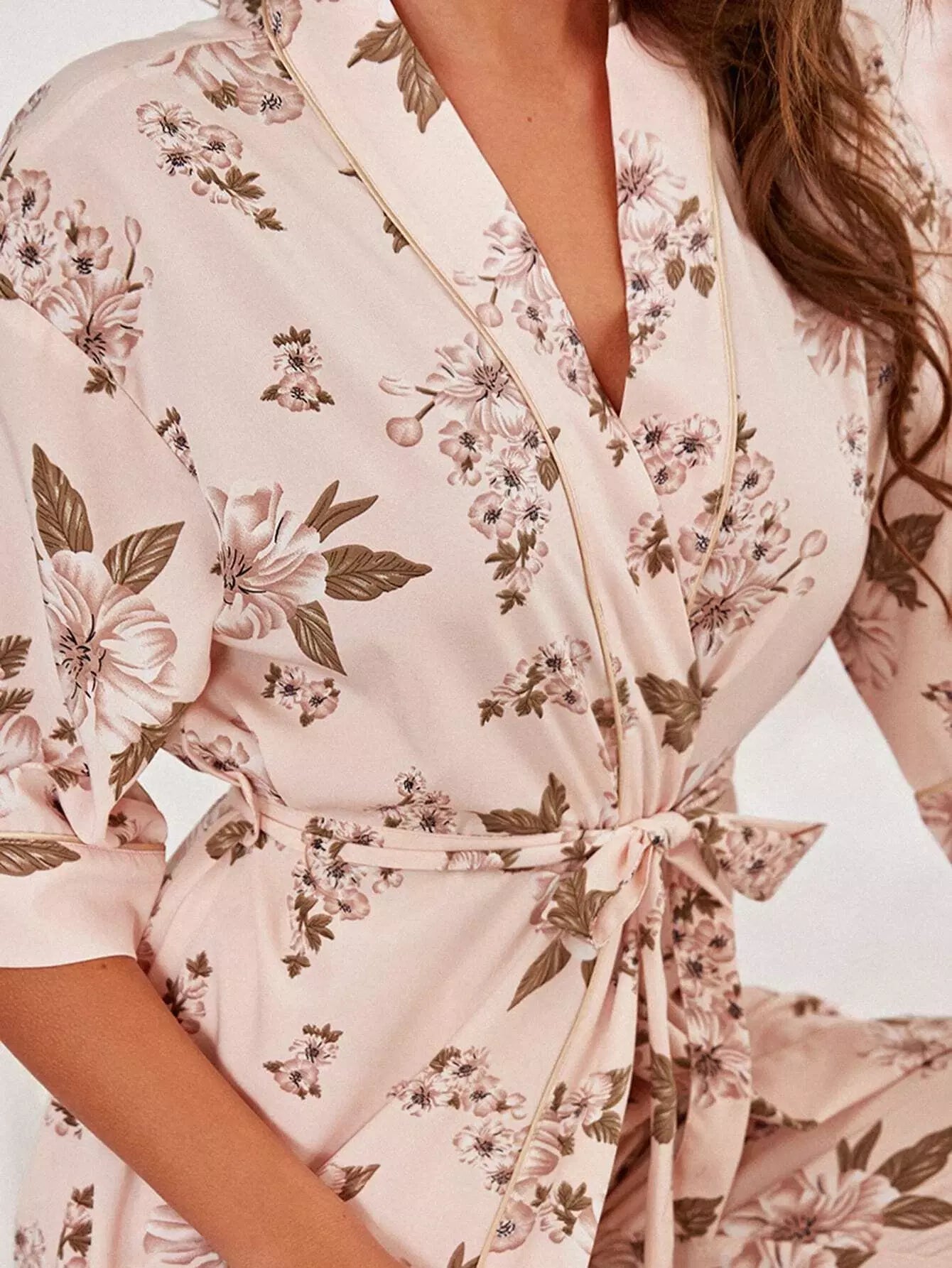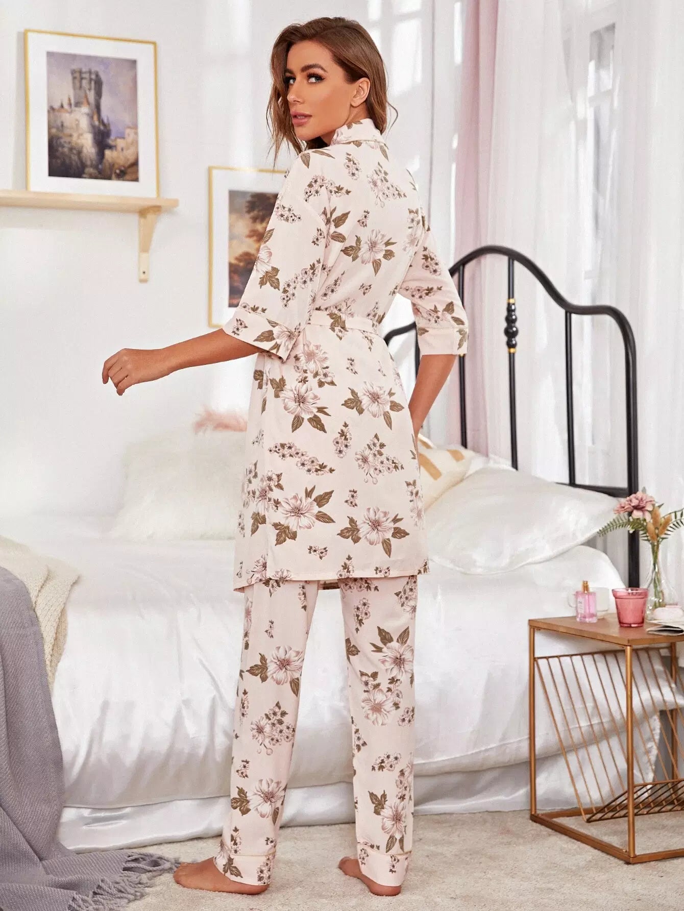 طقم رداء نوم بطبعة زهور مع بنطال بدون حزام